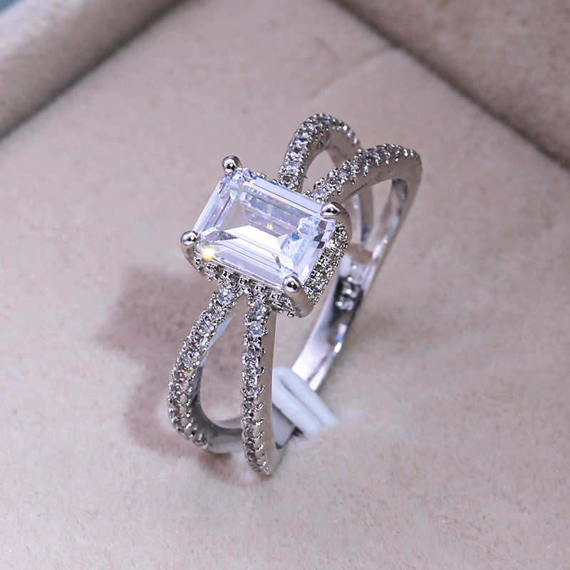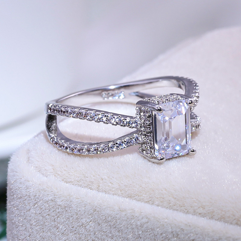 Hot selling new princess square ring European and American hot style inlaid zircon women's jewelry engagement proposal ring