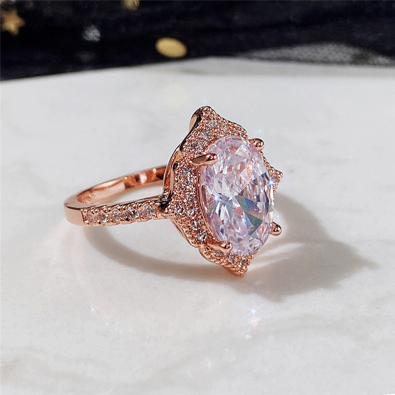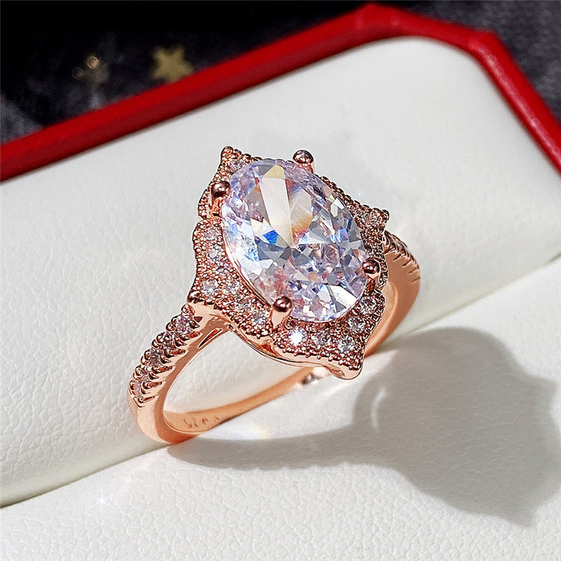 Hot selling new rose gold plated zircon round diamond princess ring European and American fashion engagement jewelry for women