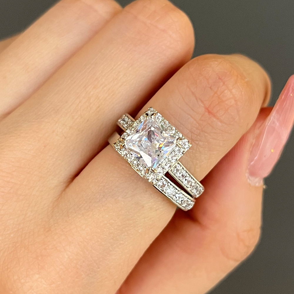 Hot selling new set ring European and American square diamond zircon wedding ring creative engagement ring for women