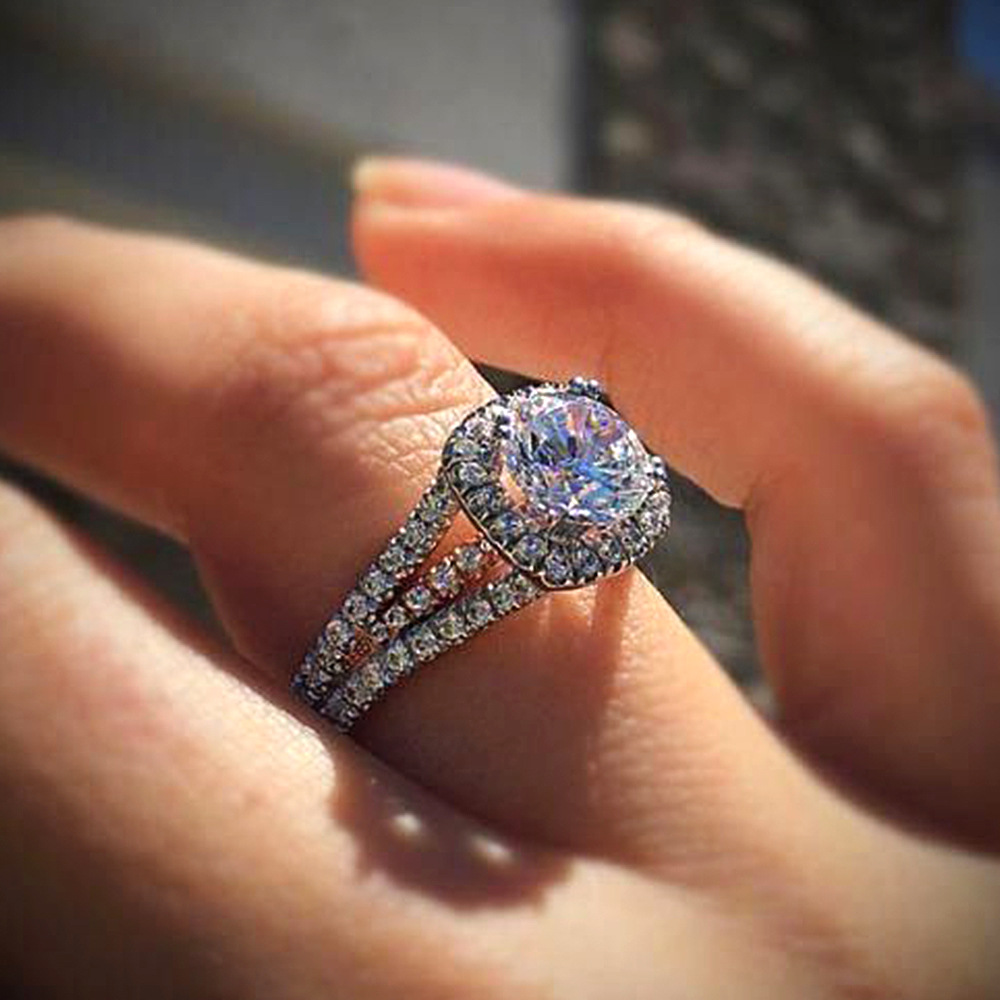 Micro-inlaid celebrity style classic all-match popular ring six-claw zircon wedding ring European and American style light luxury ring