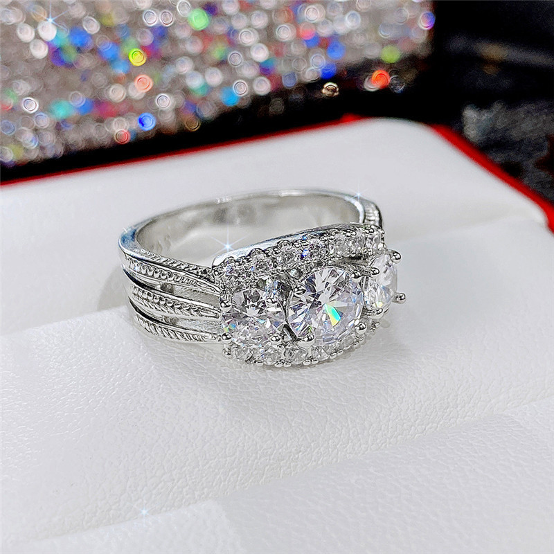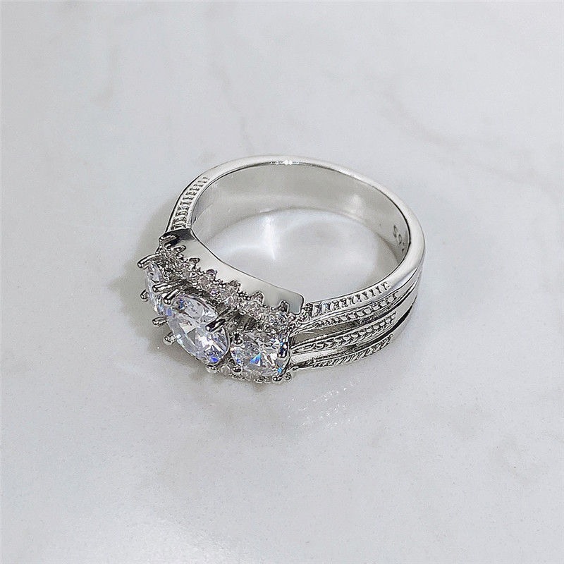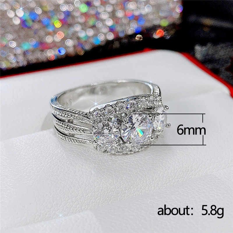 Micro-inlaid celebrity style classic all-match popular ring six-claw zircon wedding ring European and American style light luxury ring