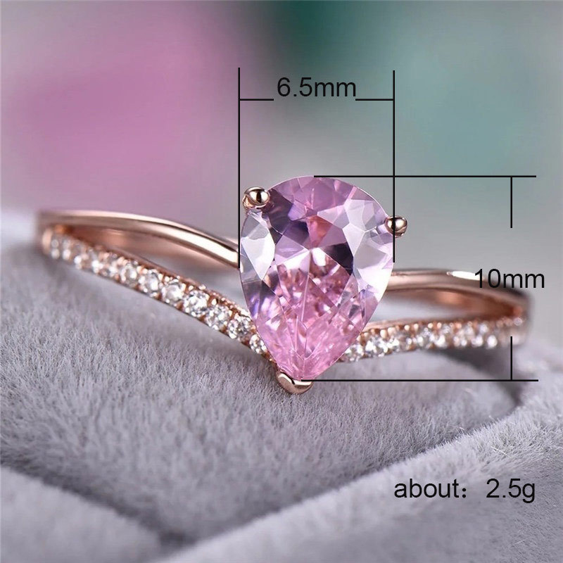 Hot selling new style sparkling diamond pink teardrop zircon ring female European and American creative V-shaped heart-shaped engagement ring