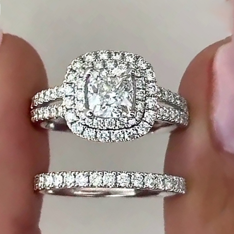 Hot selling new two sets of rings super shiny square princess rings European and American fashion women's engagement rings