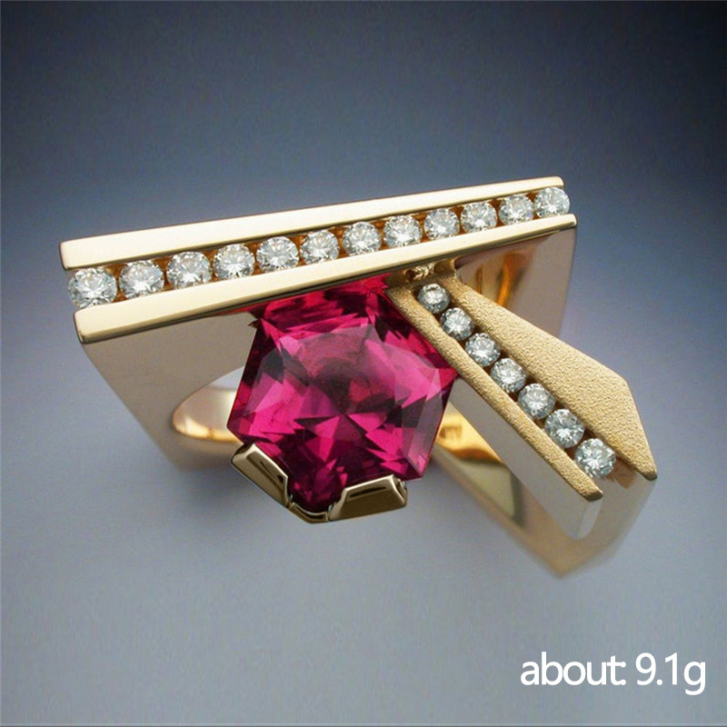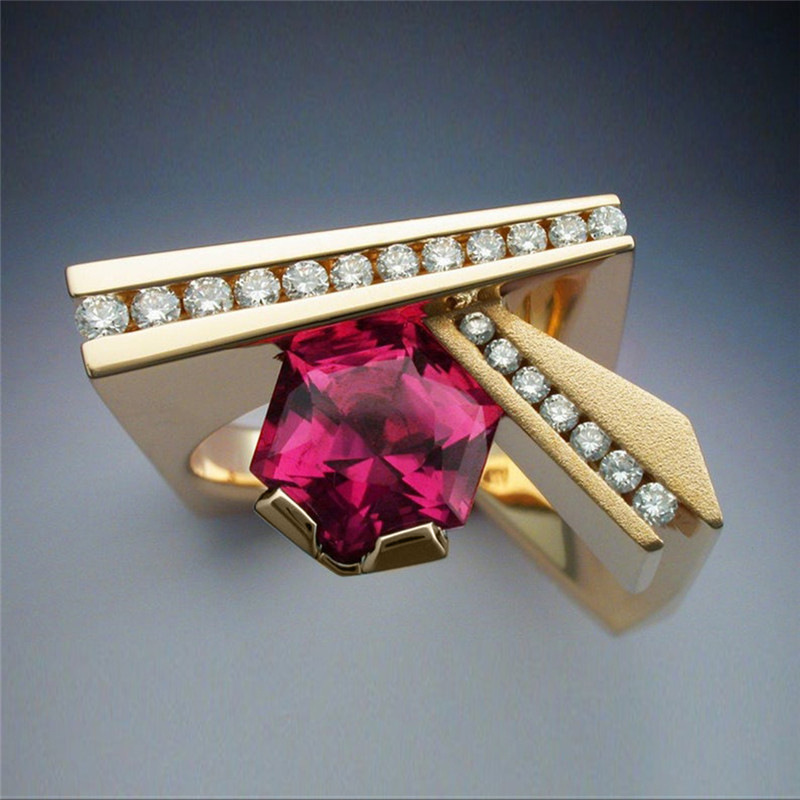 Hot selling new unique geometric men's ring copper plated gold micro inlaid red zircon ring