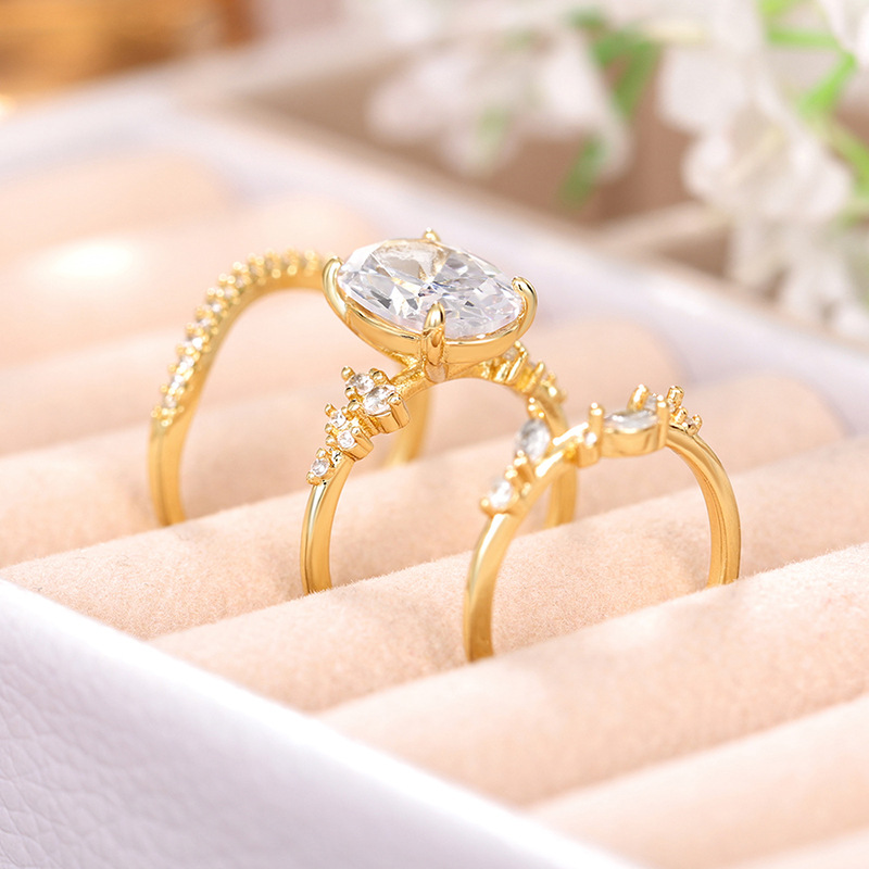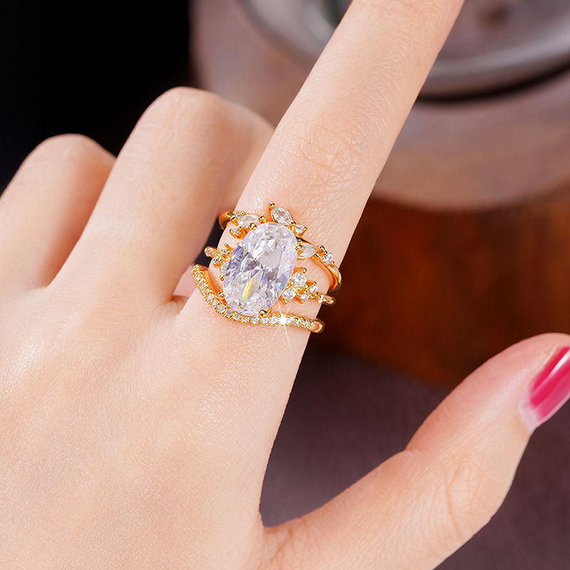 Hot selling new zircon set ring European and American super shiny oval ring cut engagement ring for women