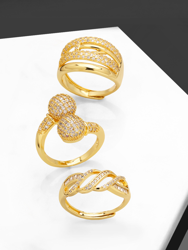 Hot selling open ring niche design full diamond gold-plated double-layer ring female jewelry ris19