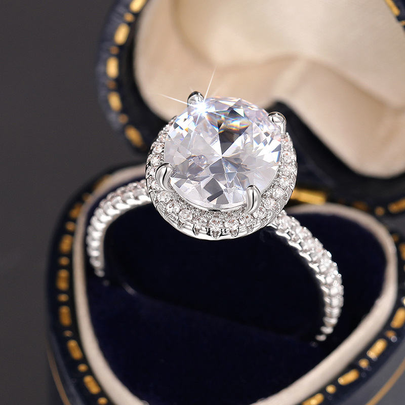 Hot selling oval zircon ring women's fashionable and elegant temperament single ring engagement wedding popular match