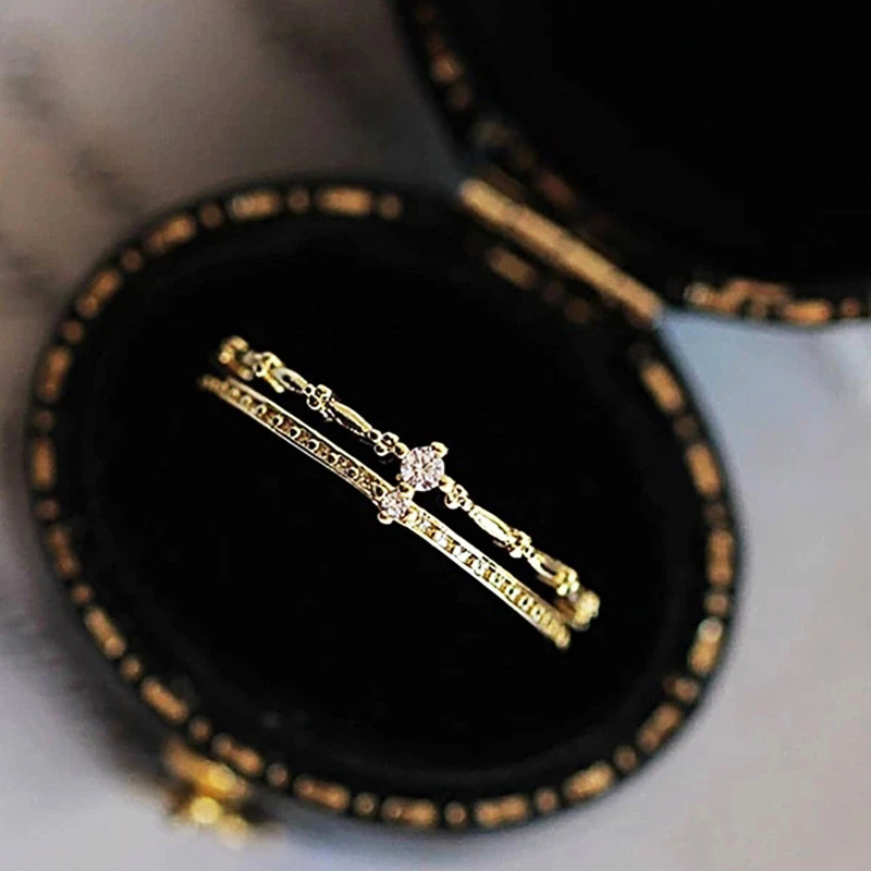 Hot selling palace style ring for women, double layer design, exquisite zircon style, elegant temperament, European and American ring