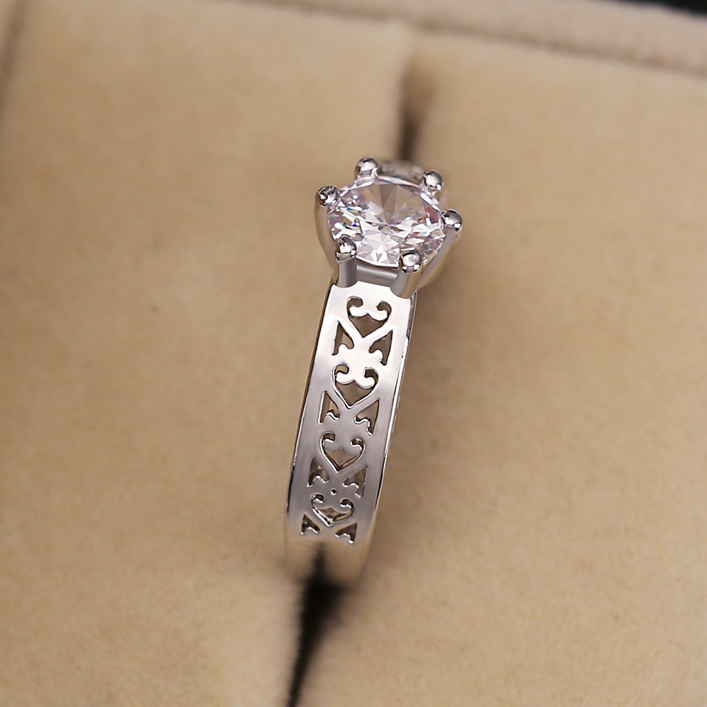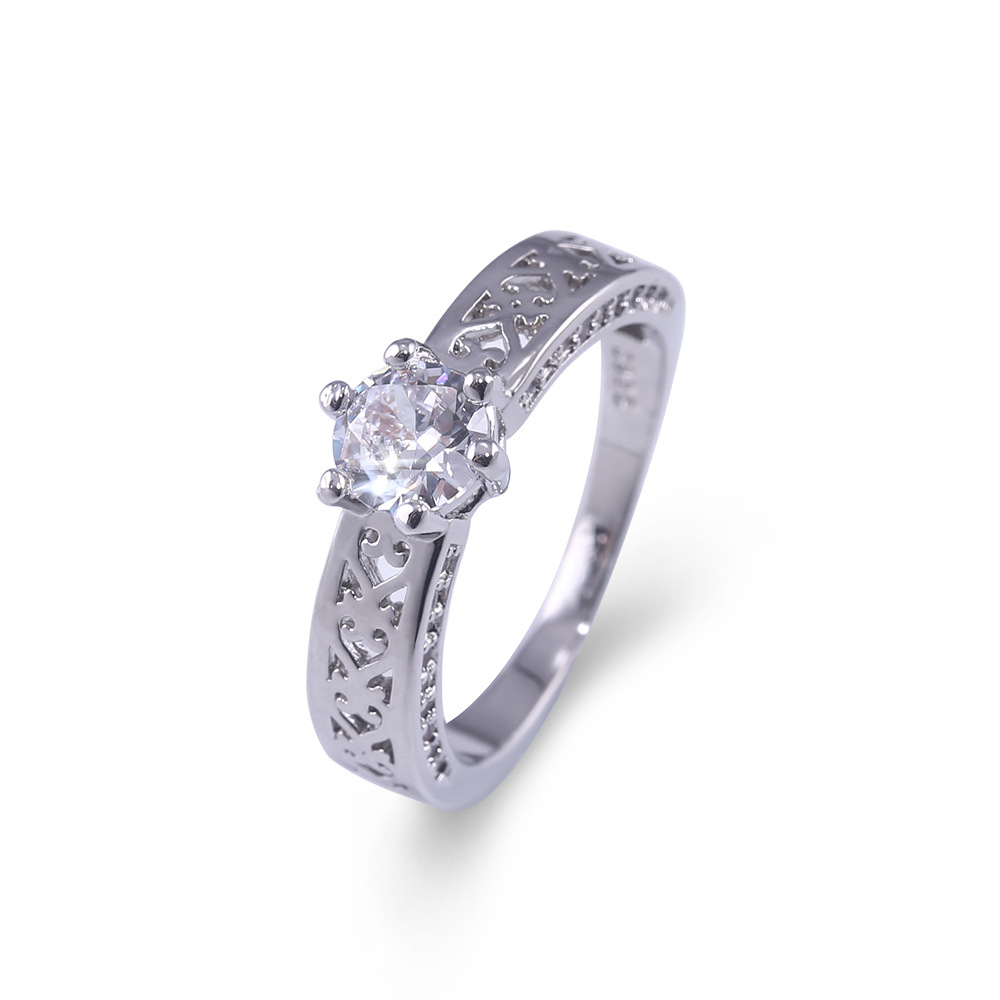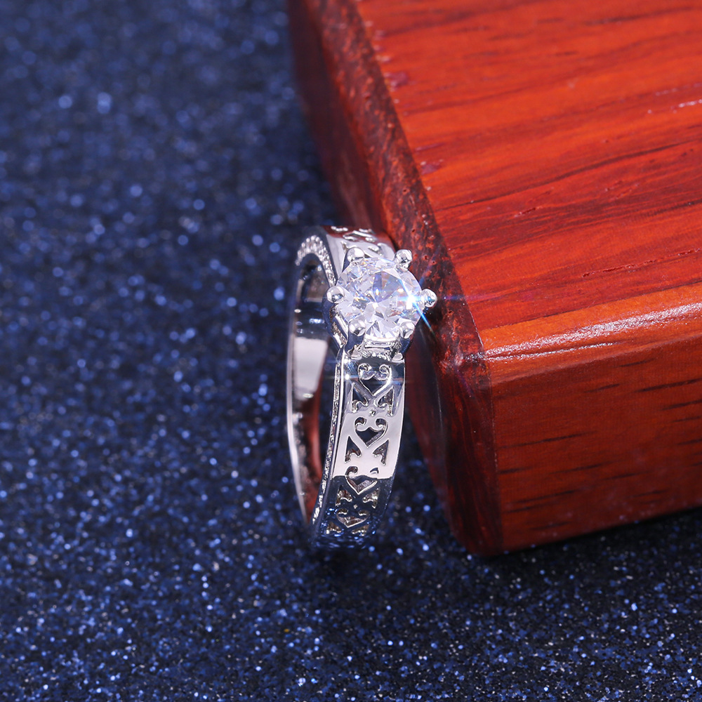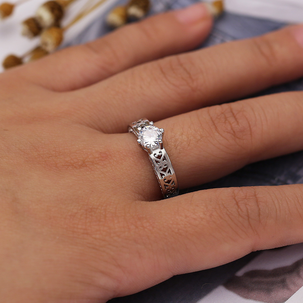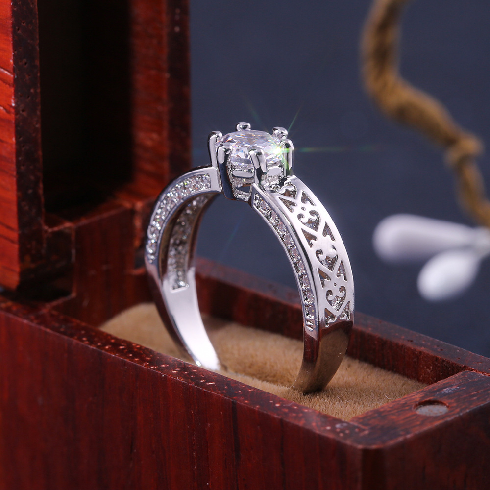 New zircon ring hollow cross four claws fashion design proposal wedding ring birthday gift ring