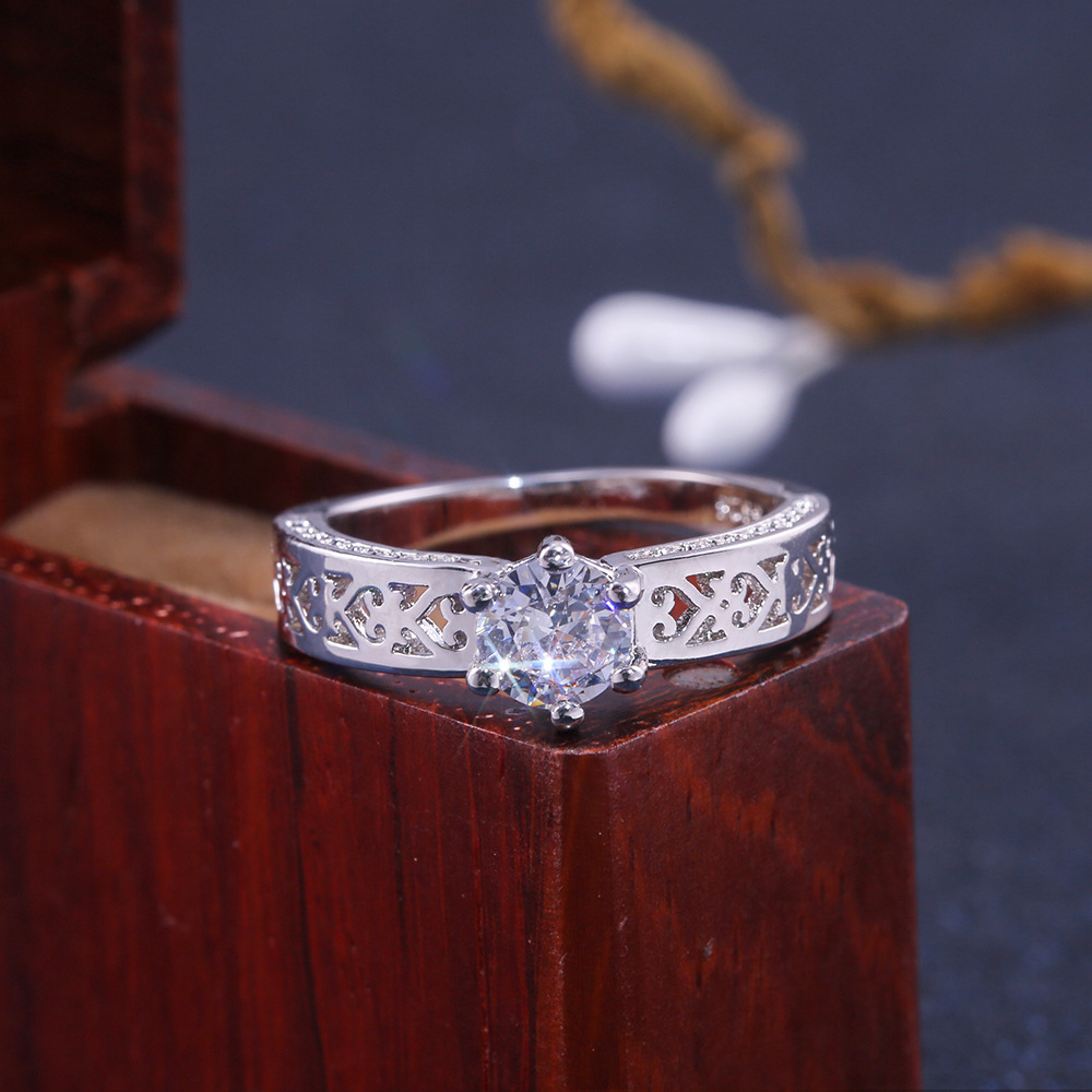 Micro-inlaid celebrity style classic all-match popular ring six-claw zircon wedding ring European and American style light luxury ring