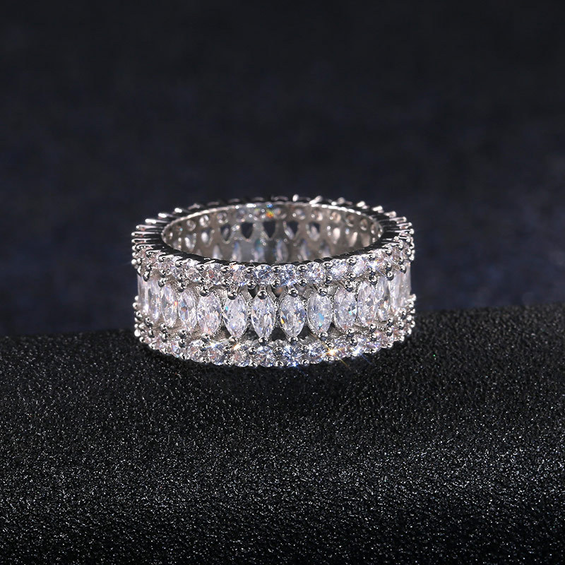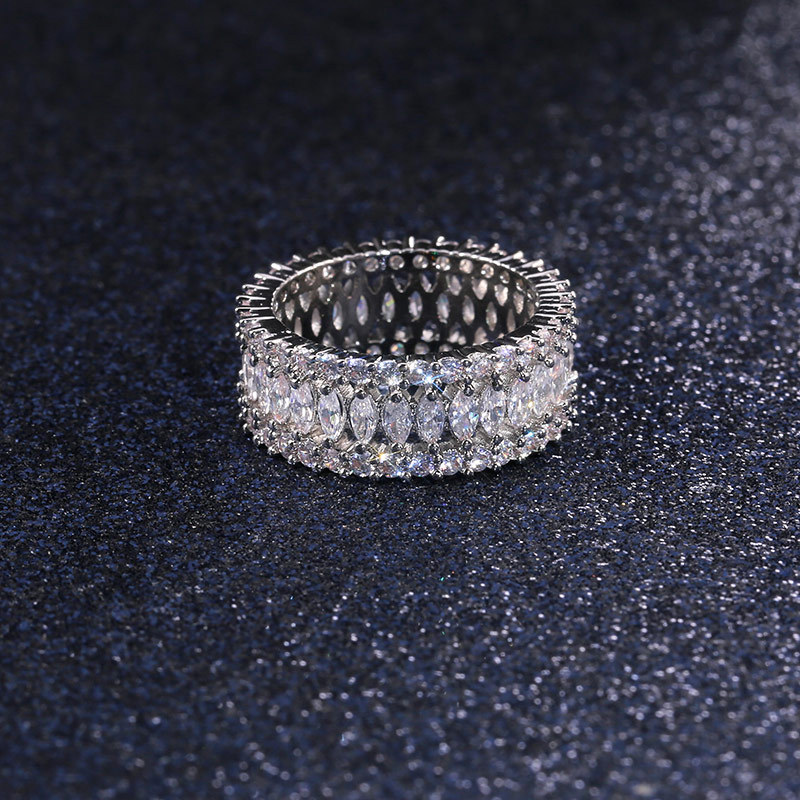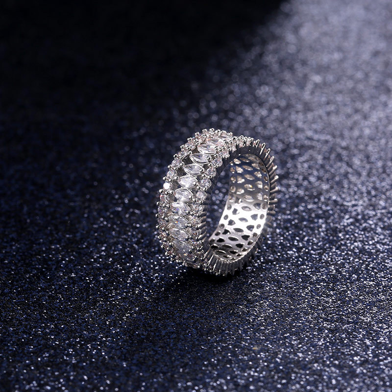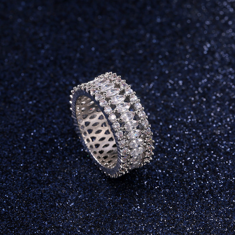 European and American luxury design ring fashionable temperament horse eye zircon ring multi-layer hollow design index finger ring