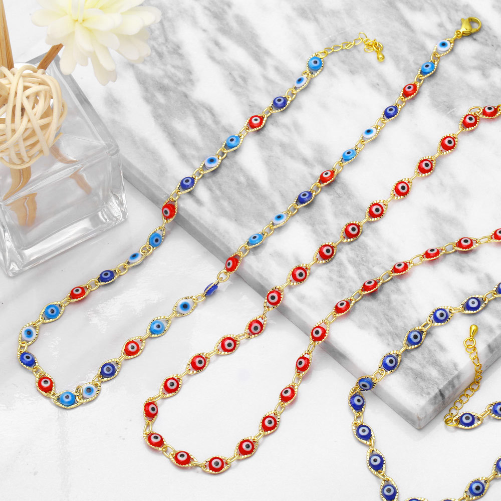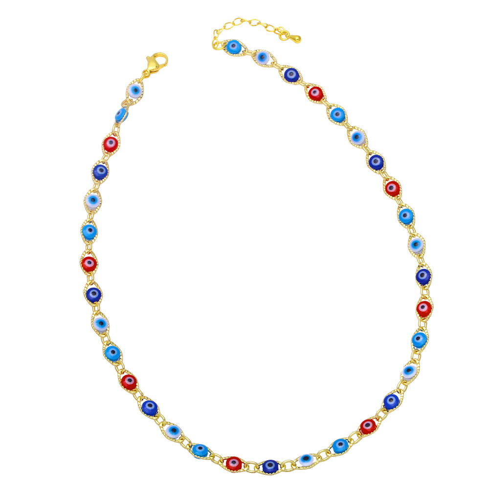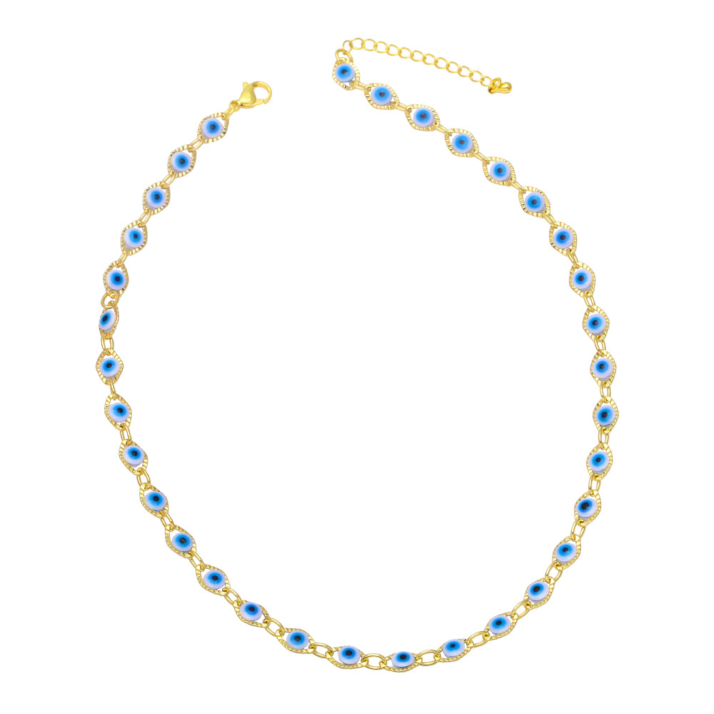 Hot selling rainbow sweet cool devil eye necklace hip hop niche design clavicle chain nkb078