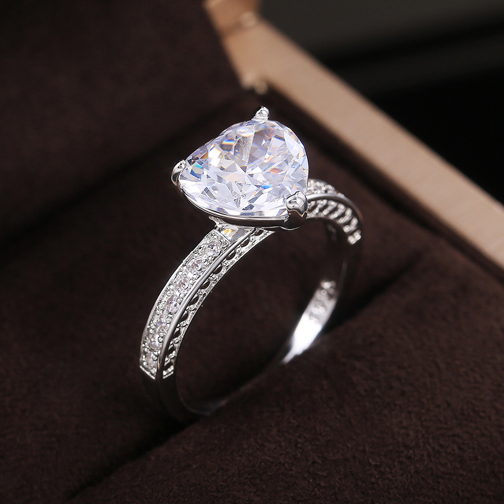 Hot selling recommended love heart women's ring peach heart zircon diamond copper plated silver fashion jewelry