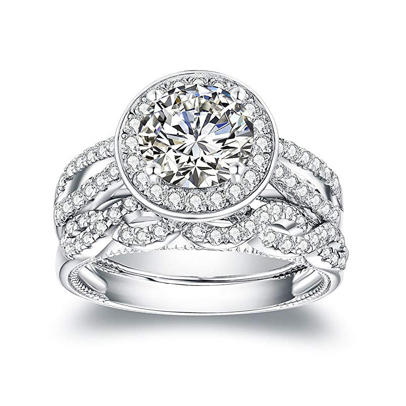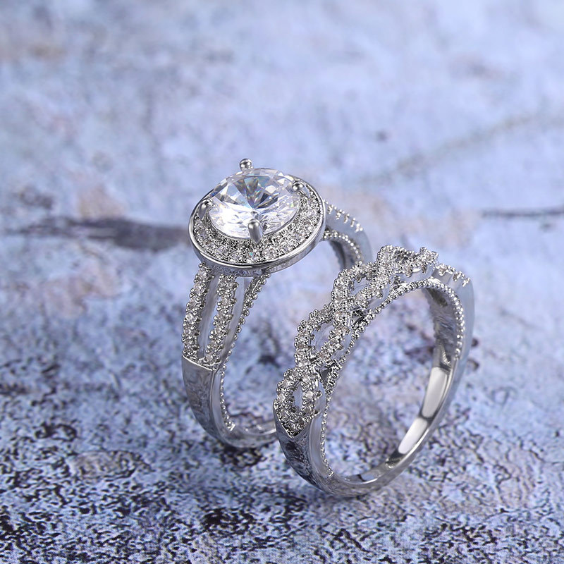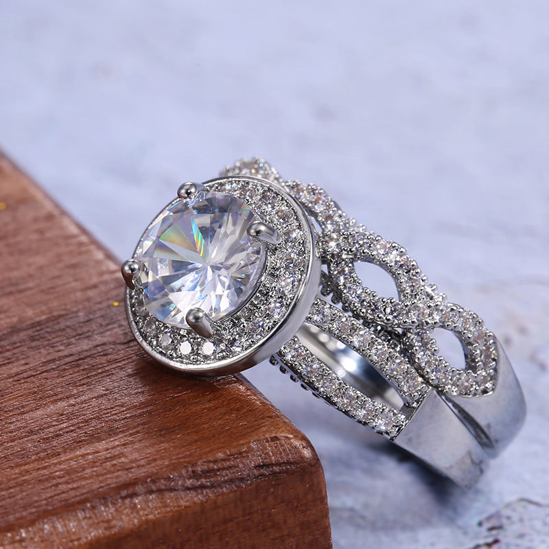 Classic four-claw imitation zircon micro-inlaid ring women's double row two-color twist arm ring engagement wedding ring women