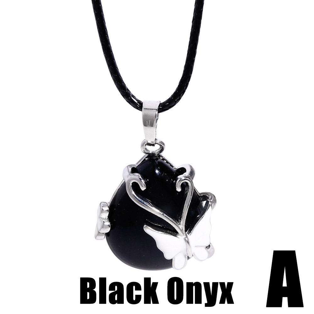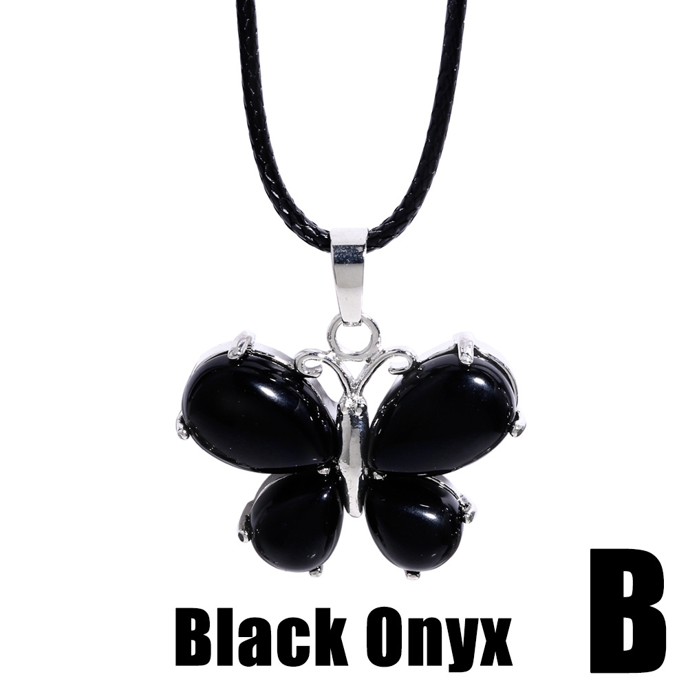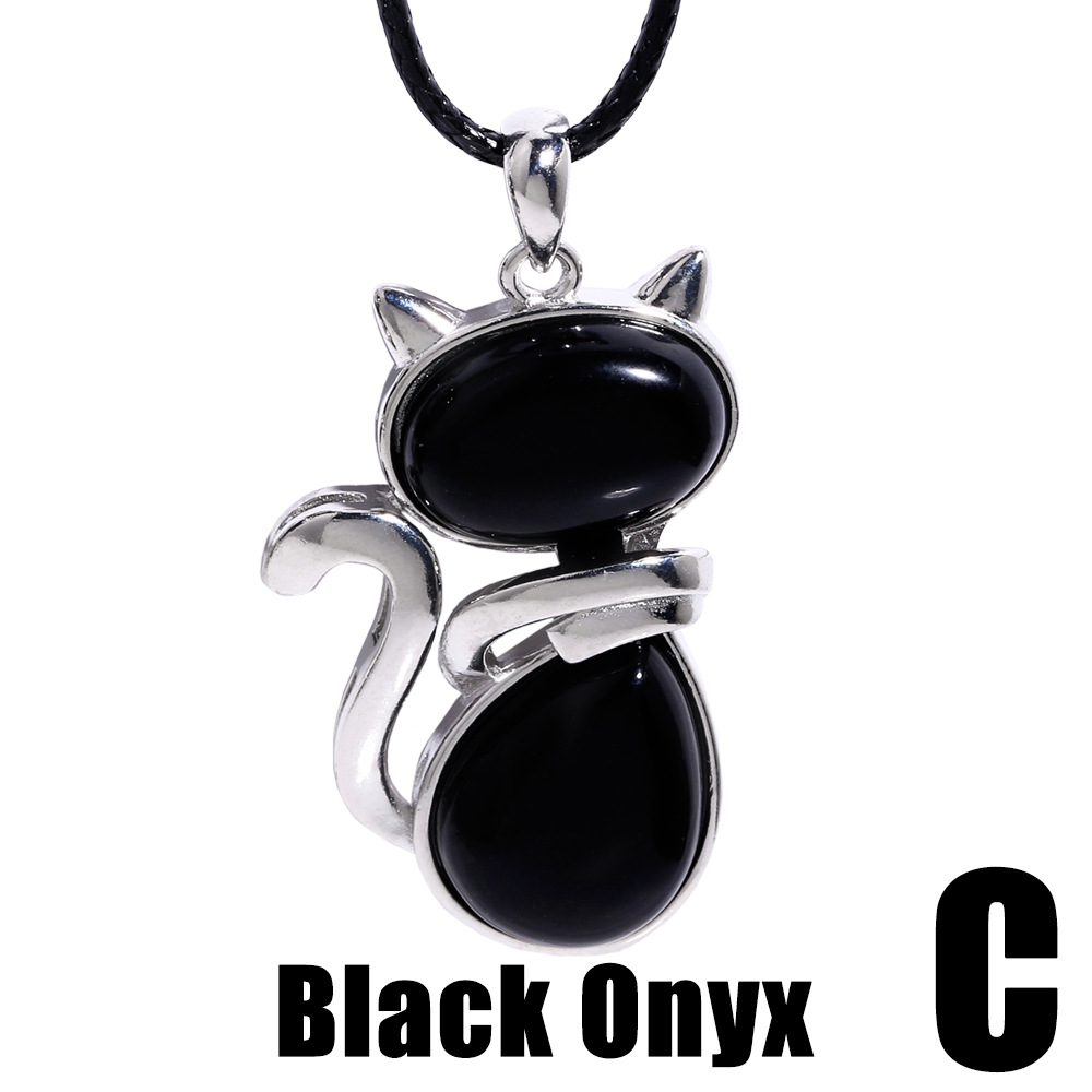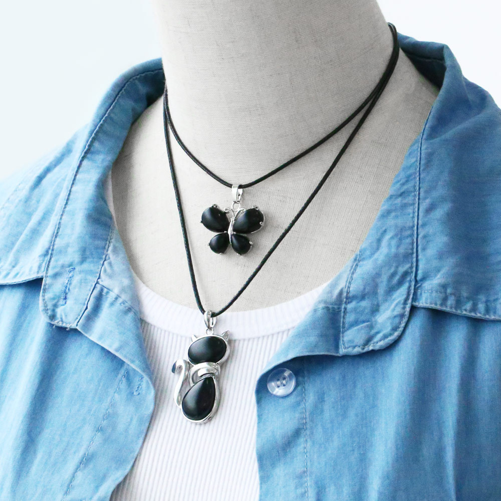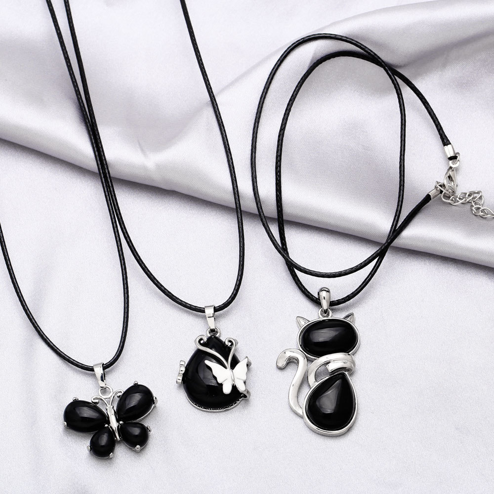 Hot selling retro black rope black agate butterfly kitten pendant necklace versatile sweater chain female nkb705