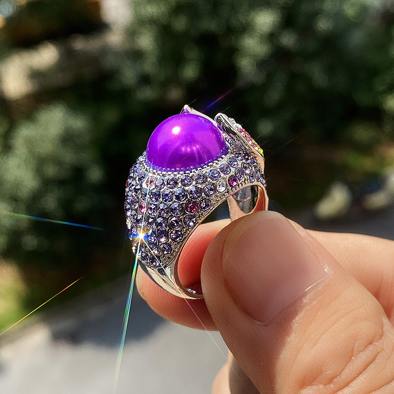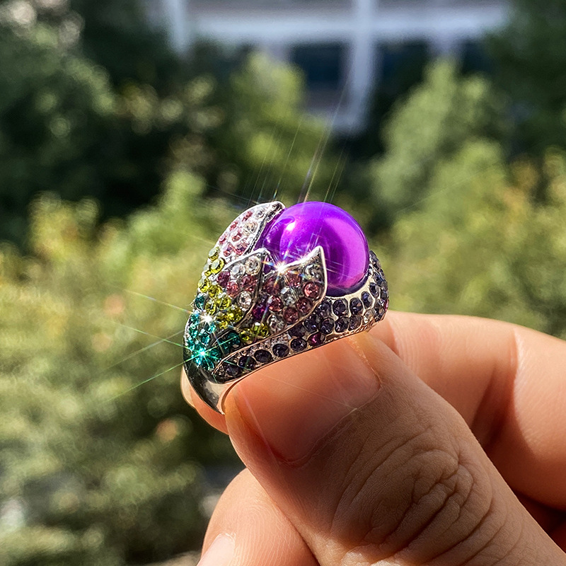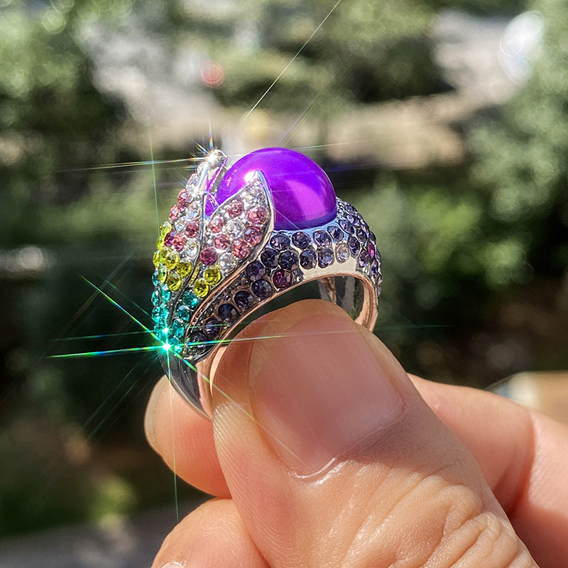 Hot-selling retro exaggerated women's full diamond petal ring alloy colored diamond inlaid ring