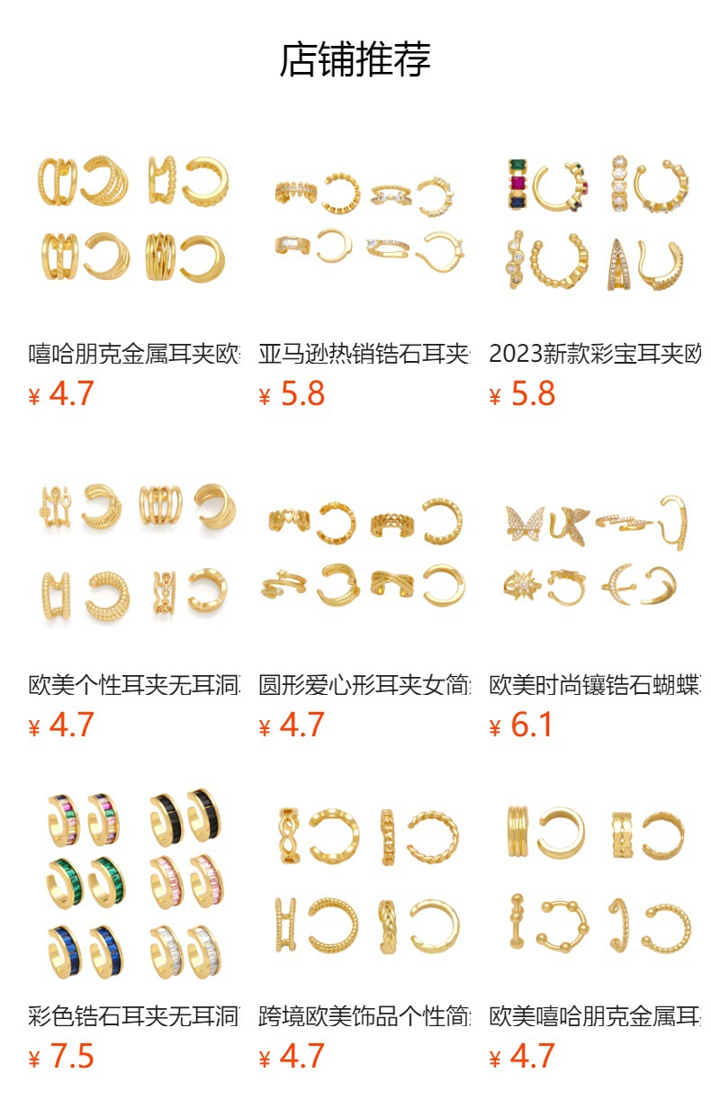 Clearance hot sale European and American zircon ear clip no piercing earrings female simple cool style ear bone clip ert81