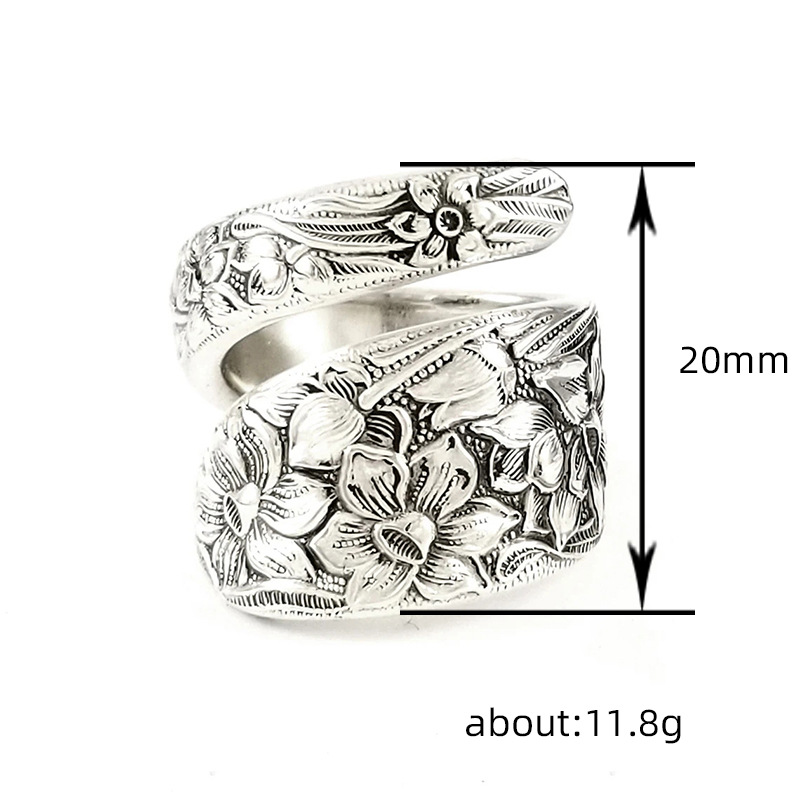 Hot selling retro open ring lily ring carved flower jewelry fashion old ring