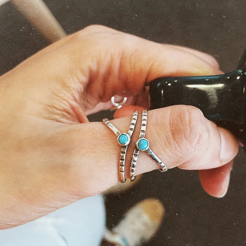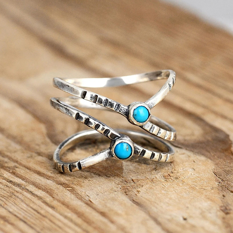 Hot selling retro single ring fashion popular geometric turquoise ring bohemian style ring