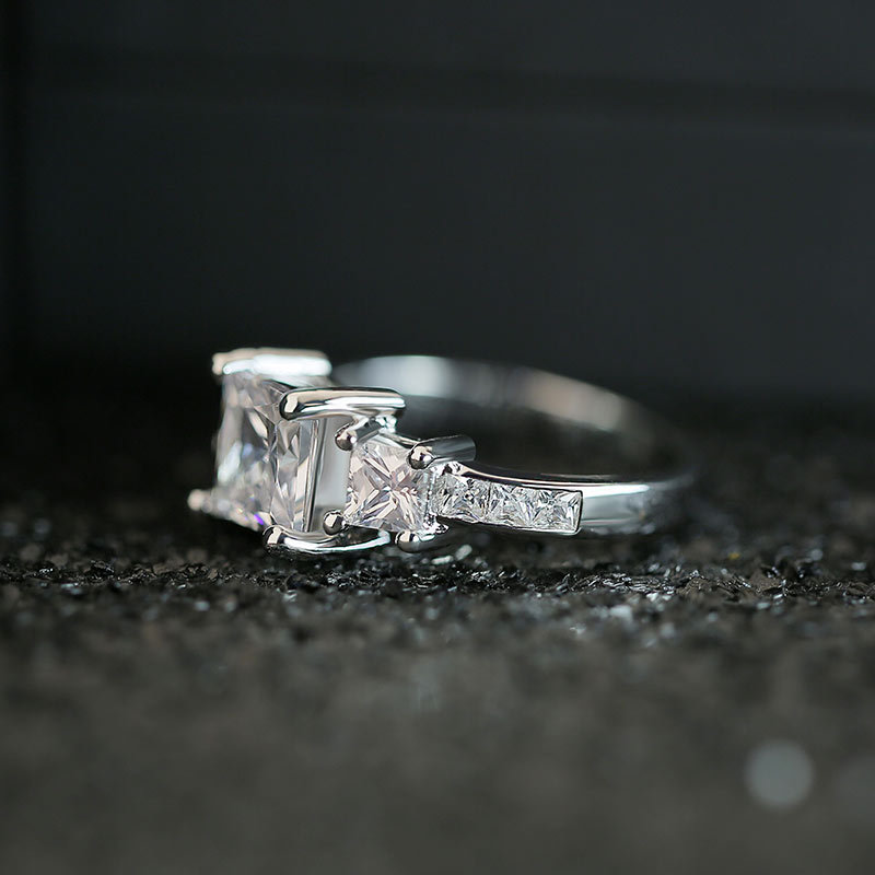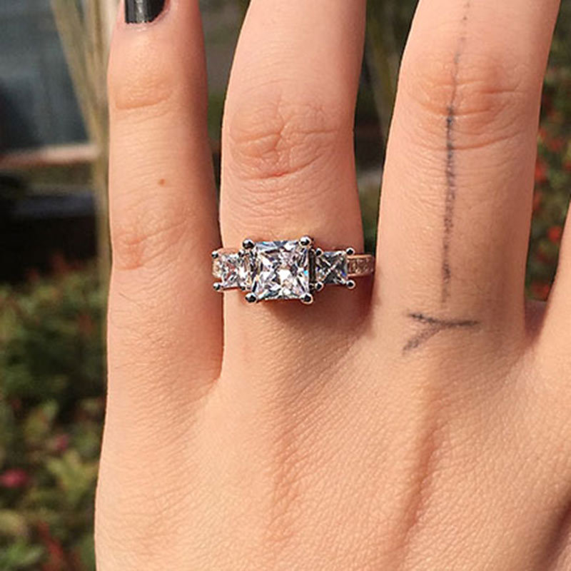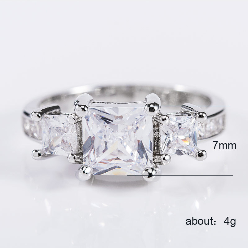 Hot selling new princess square ring European and American hot style inlaid zircon women's jewelry engagement proposal ring