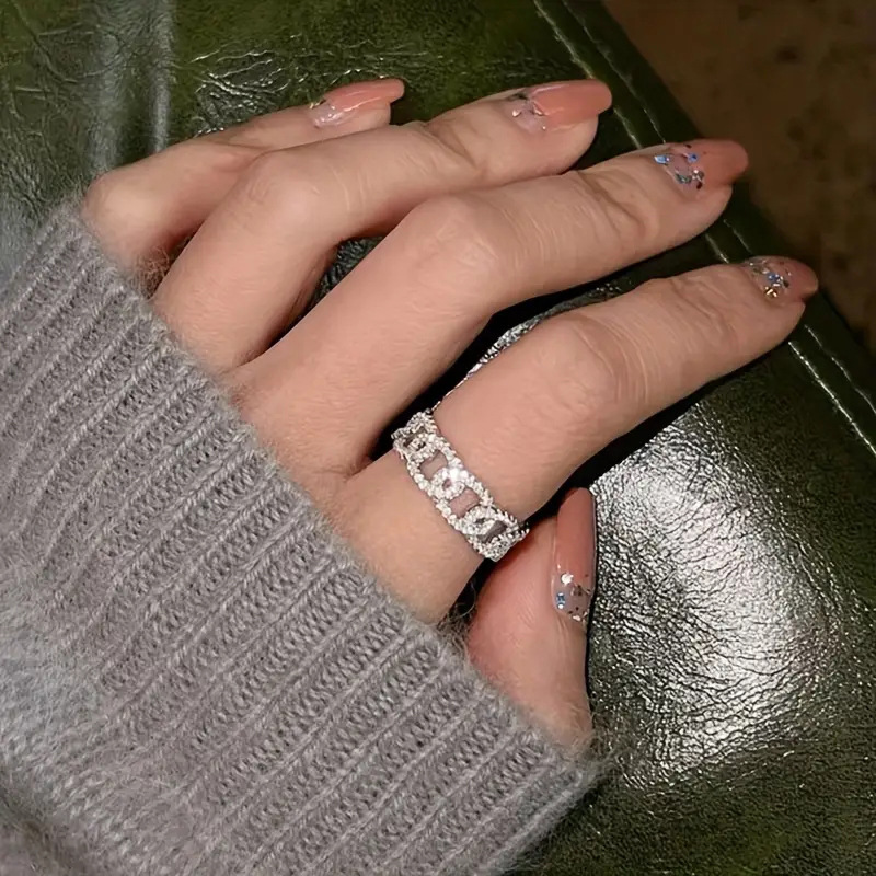 Starry sky ring female niche design couple ring full of zircon ring female trendy cool style index finger