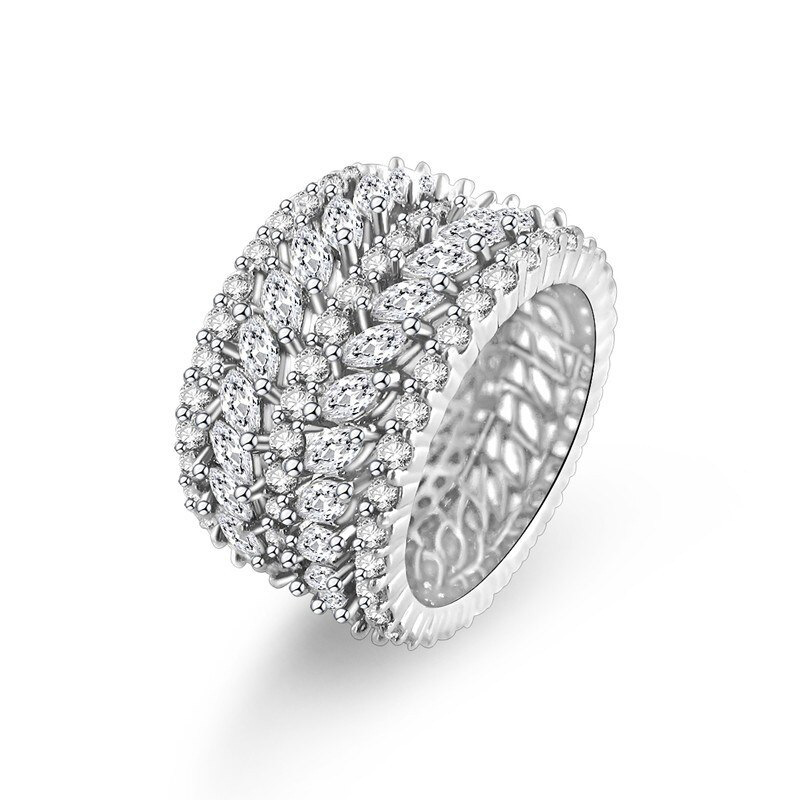 Hot selling ring full of diamonds super sparkling floral leaf ring fashionable luxury high-end ring