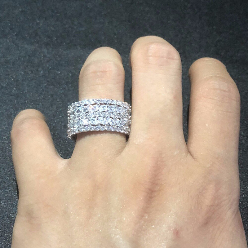 Micro-inlaid celebrity style classic all-match popular ring six-claw zircon wedding ring European and American style light luxury ring