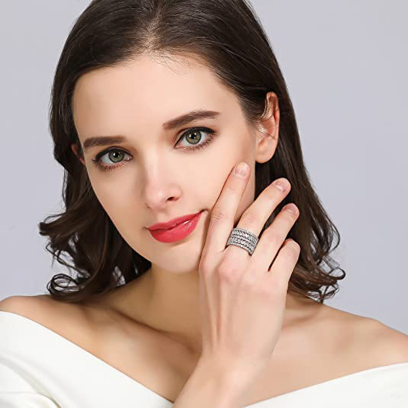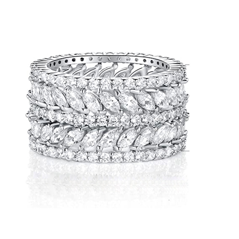 European and American luxury design ring fashionable temperament horse eye zircon ring multi-layer hollow design index finger ring