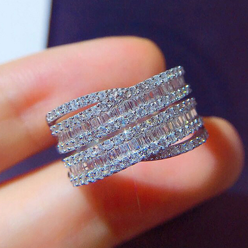 Hot selling ring source inlaid T square zircon ring luxury women's wedding ring