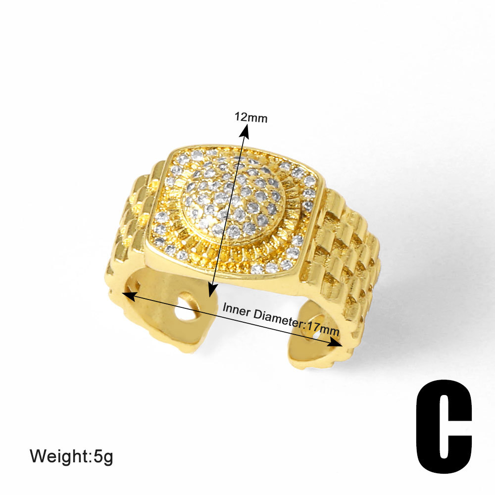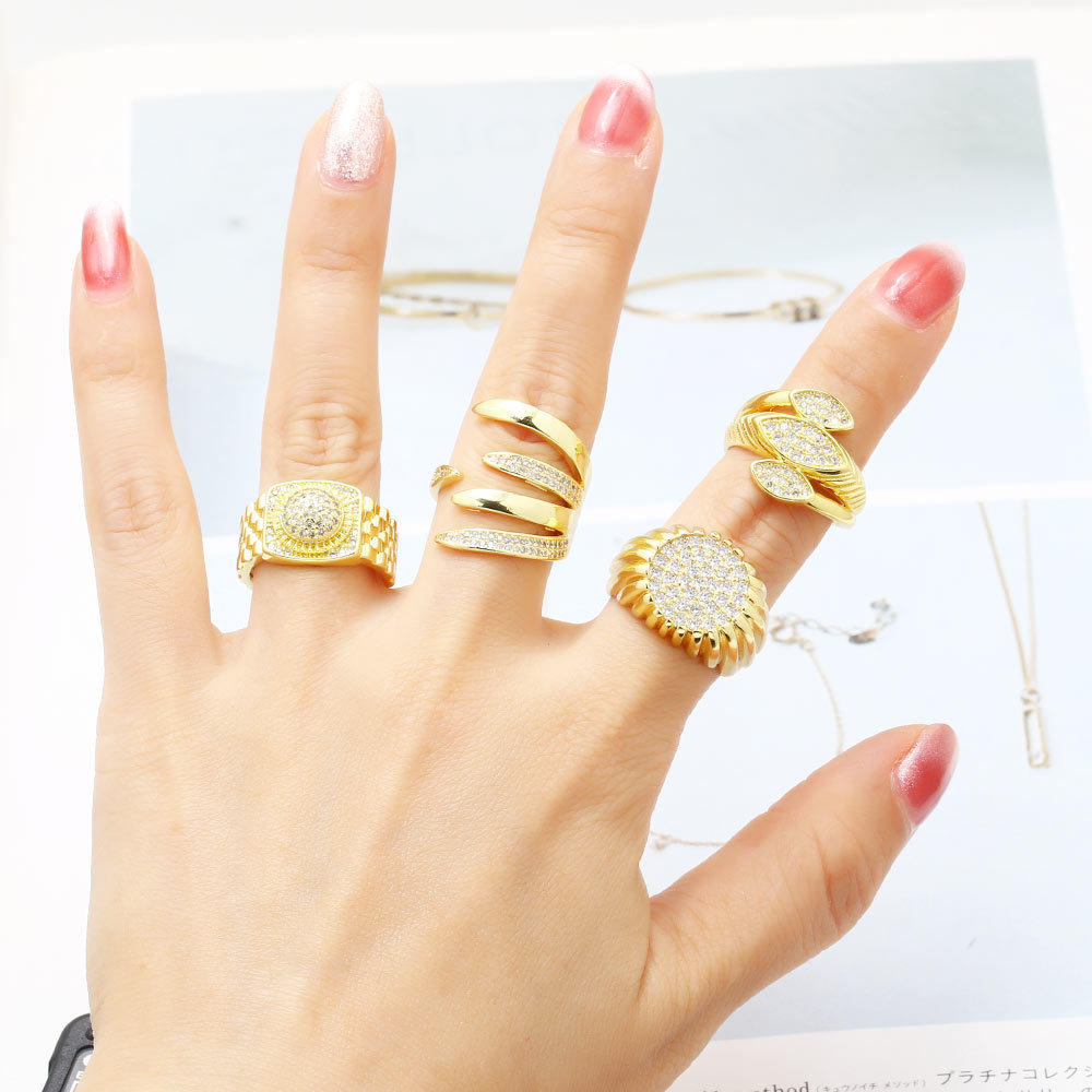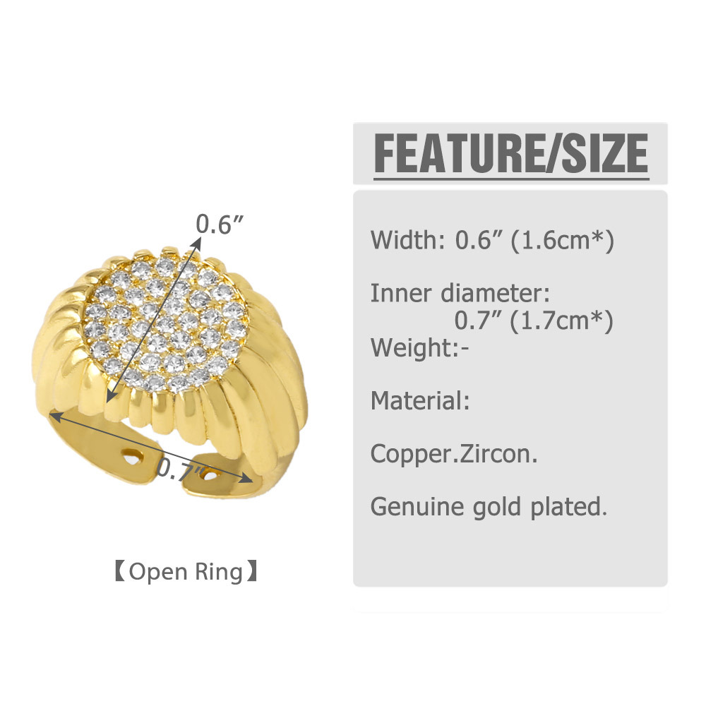 Hot selling round full zircon ring female copper plated real gold retro double layer open ring rih53