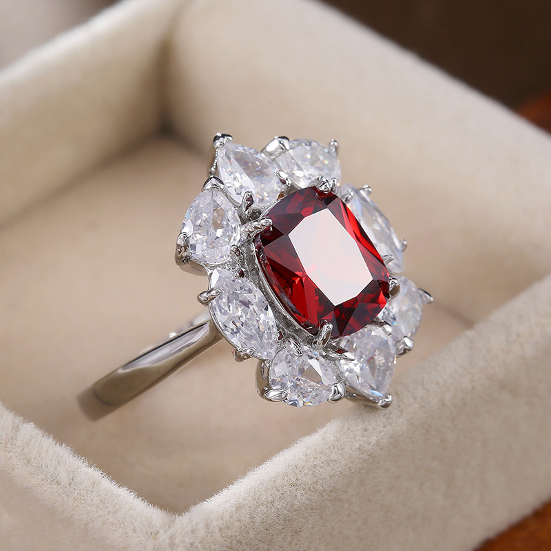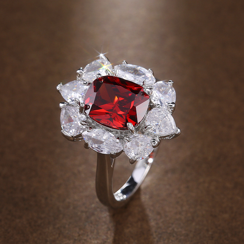 New zircon ring hollow cross four claws fashion design proposal wedding ring birthday gift ring