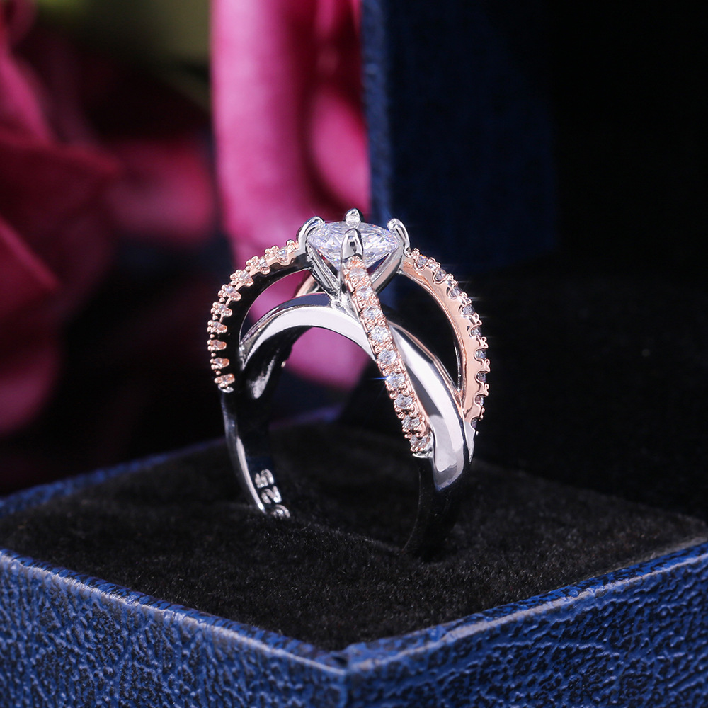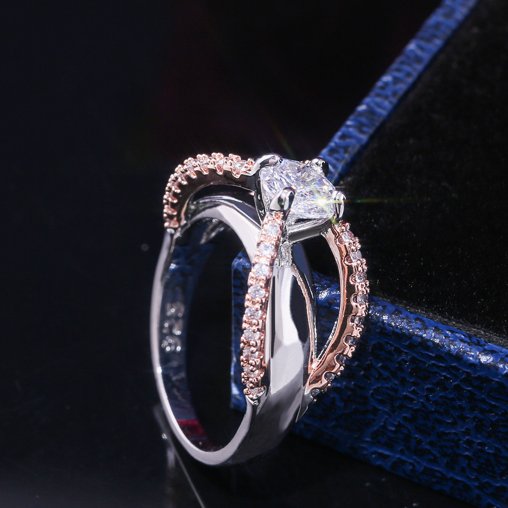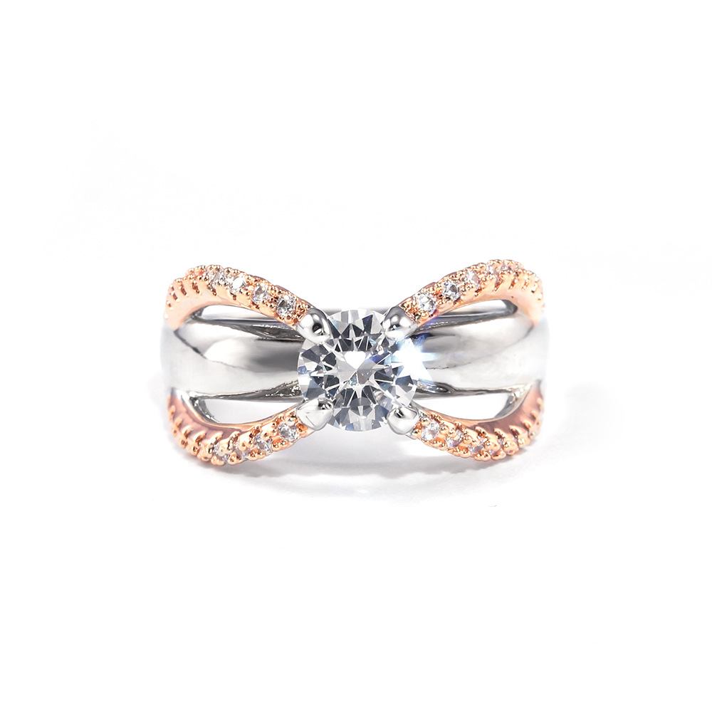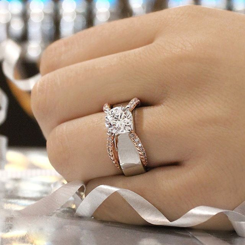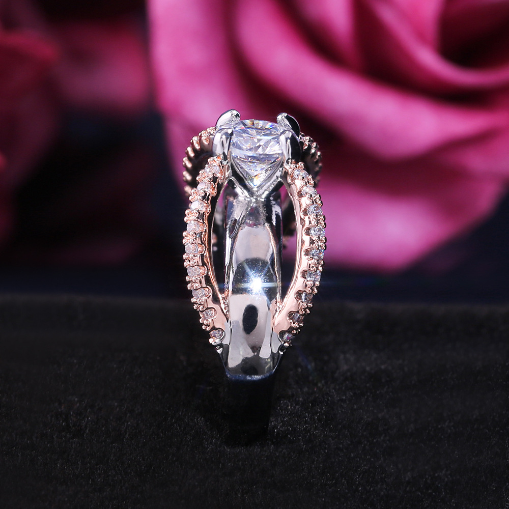 Hot selling simple and elegant two-tone round zircon women's engagement ring with diamond ring in Europe and America