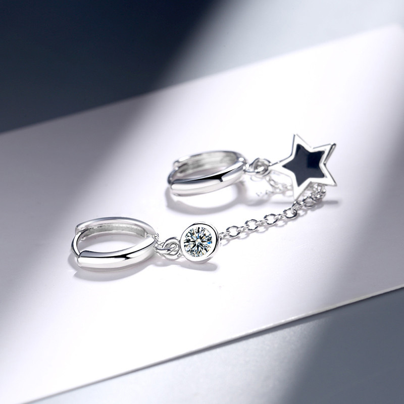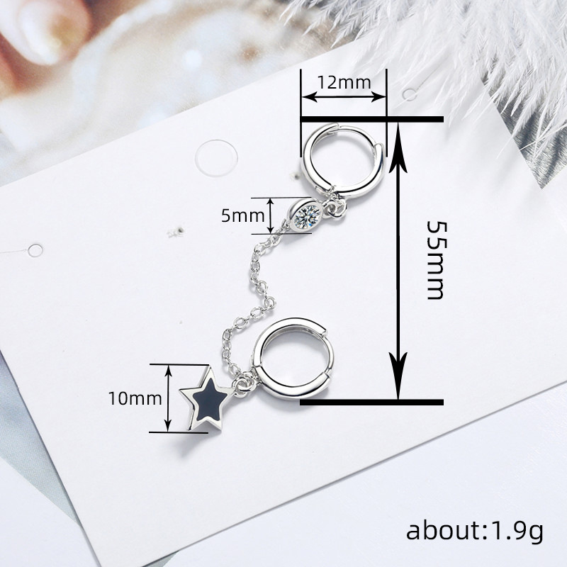 Hot selling simple double ear piercing one-piece tassel chain earrings five-pointed star glue ear clips