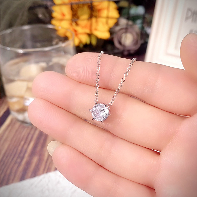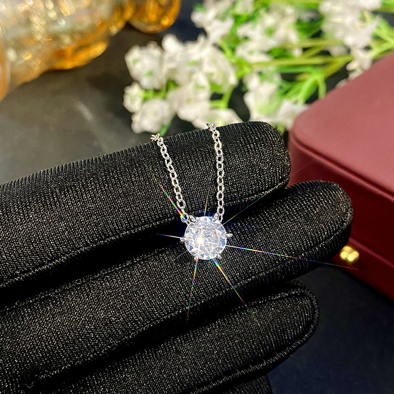 Hot selling simple geometric necklace European and American retro classic six claw round pendant light luxury necklace