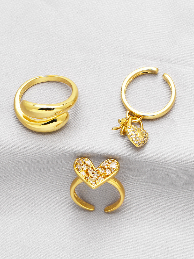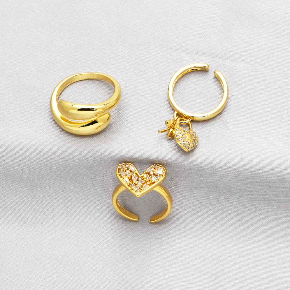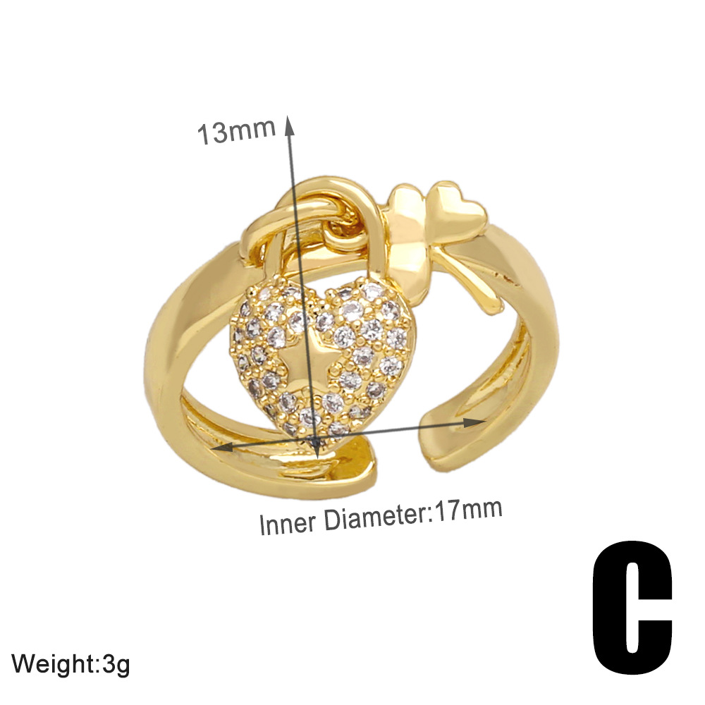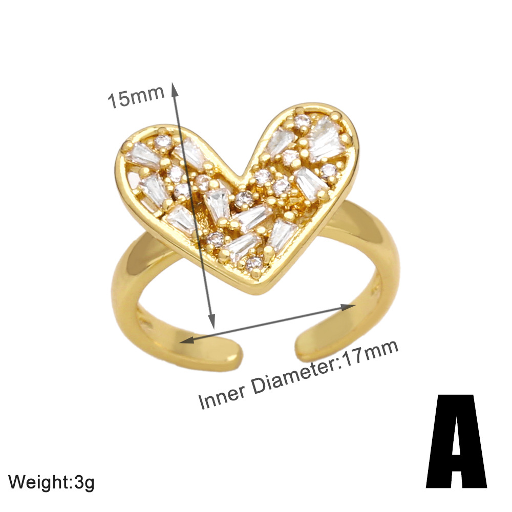 Hot selling simple love ring fashion gold-plated zircon peach heart open ring accessories rim50