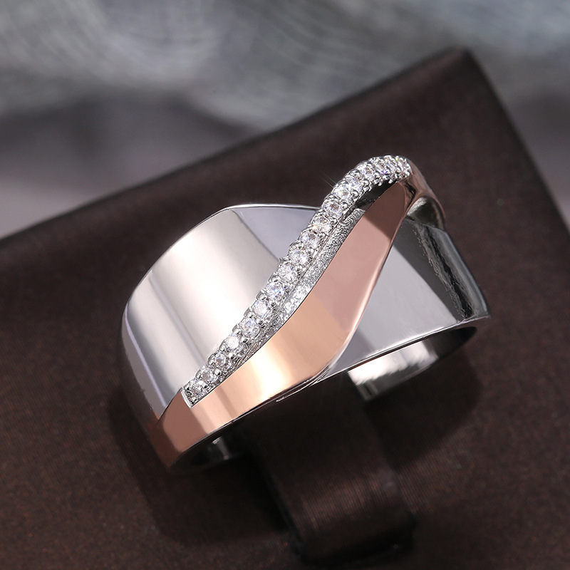 Hot selling simple rose gold two-tone bow cross zircon ring jewelry in Europe and America