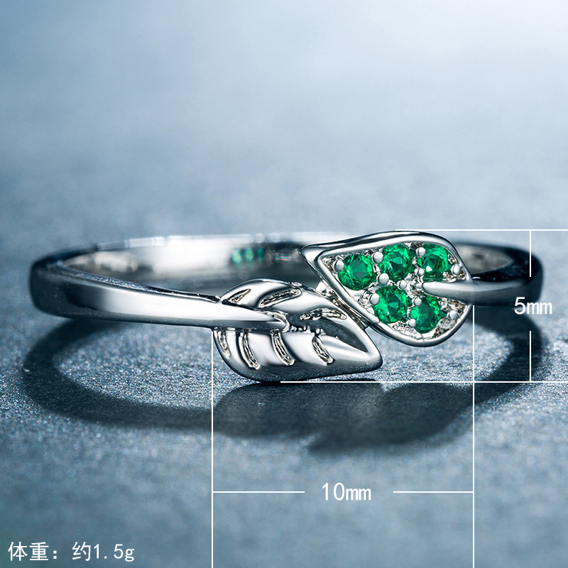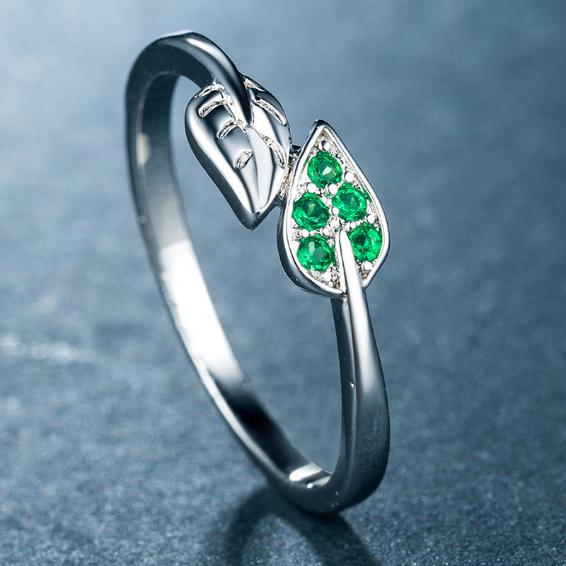 Hot selling small fresh new simple tree branch green leaf women's zircon jewelry exquisite copper plated silver ring