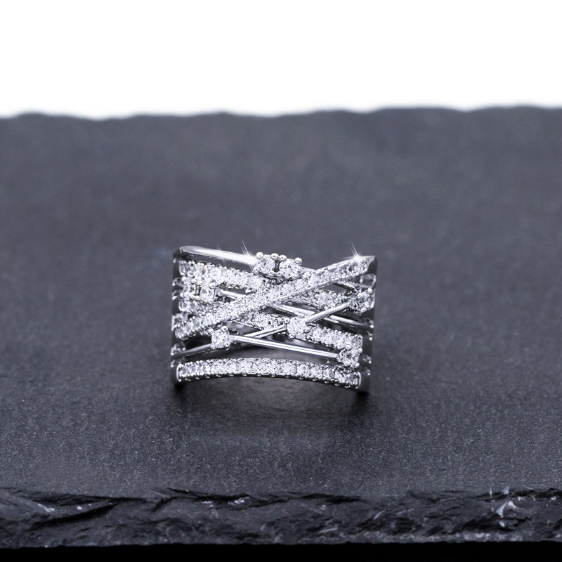 Hot selling sparkling diamond micro-inlaid zircon ring European and American creative women's cross-color ring jewelry