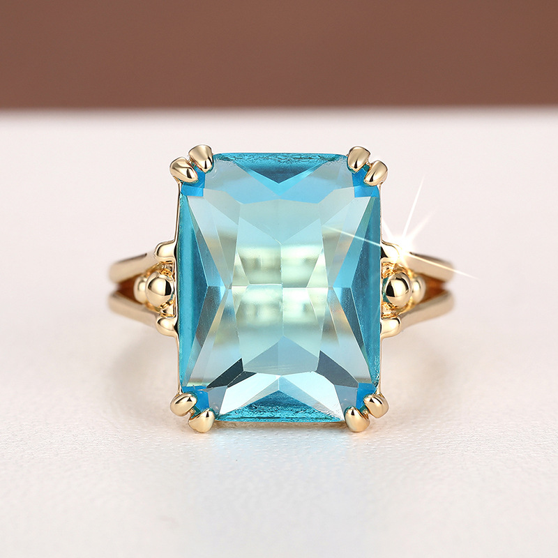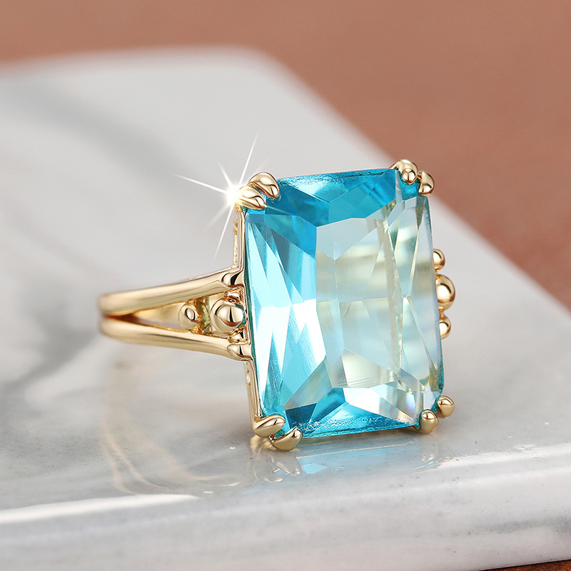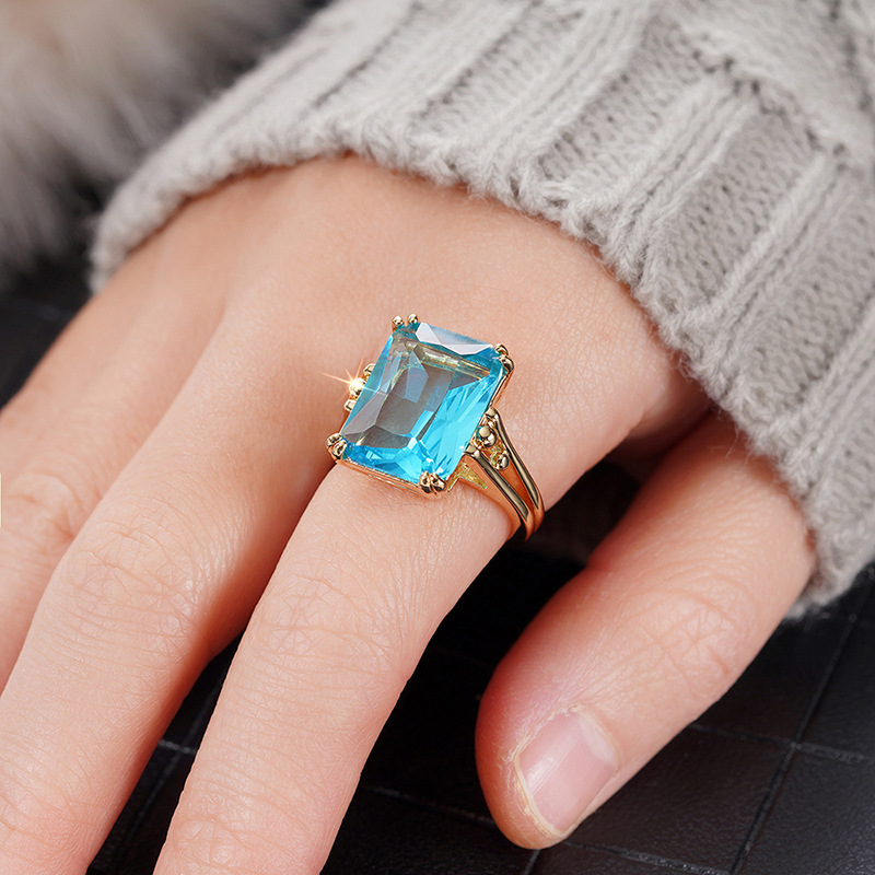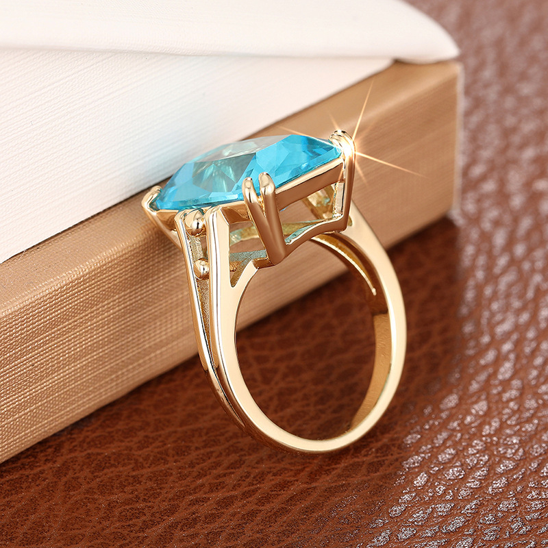 Hot selling square ring for women, geometric glass large diamond jewelry, blue romantic chic style, super hot style