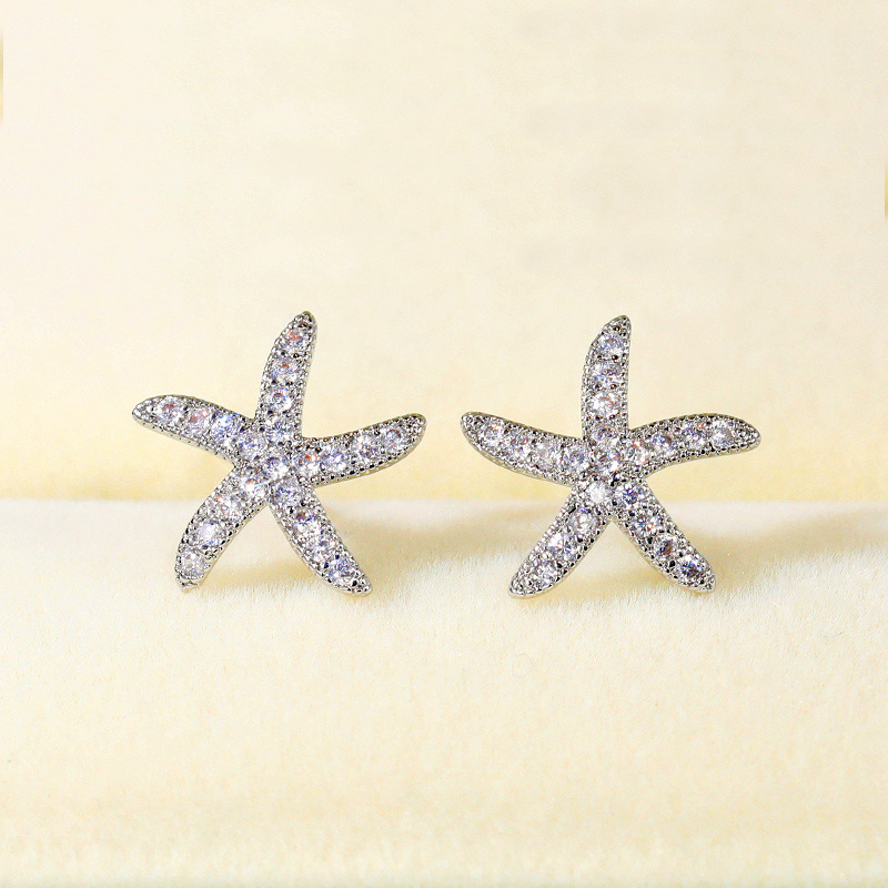 Hot selling starfish diamond earrings European and American creative five-pointed star full diamond zircon earrings ear jewelry