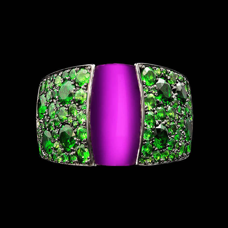 Hot selling style elegant lady imitation purple gemstone two-color ring ladies fashionable exaggerated jewelry