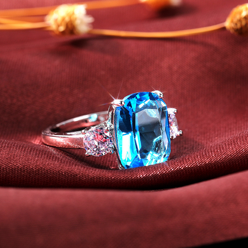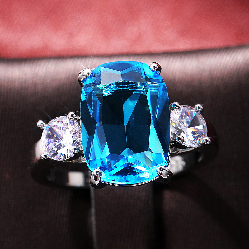 Hot selling super flash sea blue zircon temperament women's ring fashion wedding bridal hand jewelry wholesale