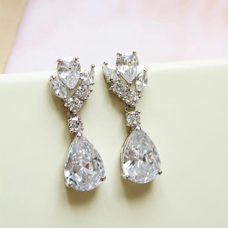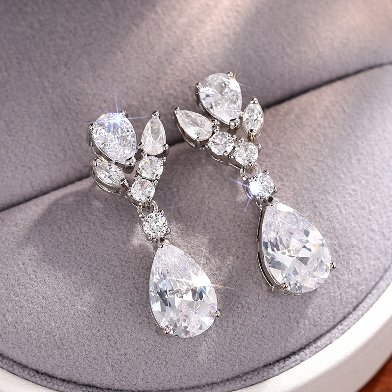 Hot selling teardrop-shaped earrings in Europe and America, zircon sparkling temperament earrings, fashionable and light luxury popular jewelry