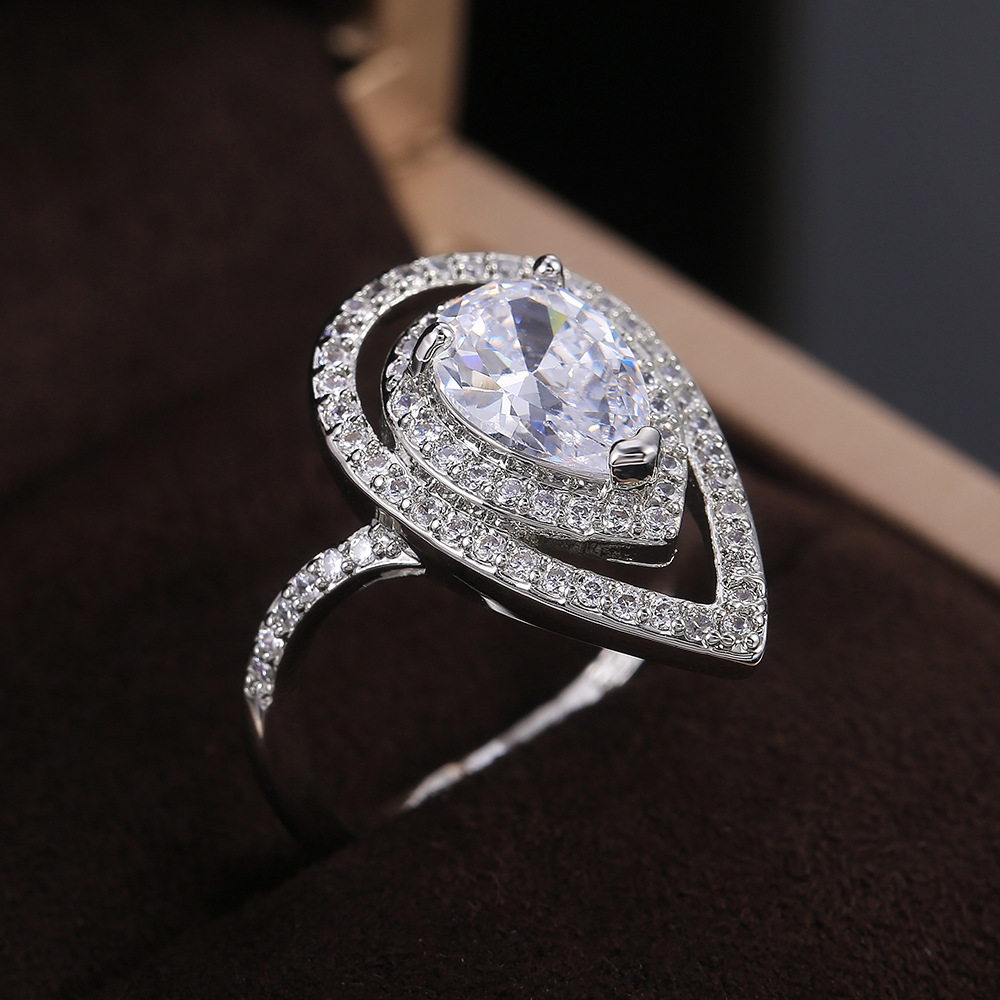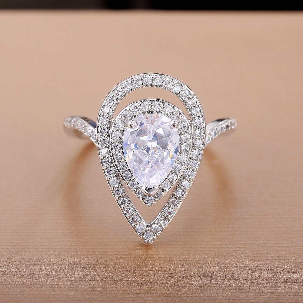 Hot selling teardrop-shaped pear-shaped zircon ring for women with European and American diamond engagement jewelry wholesale