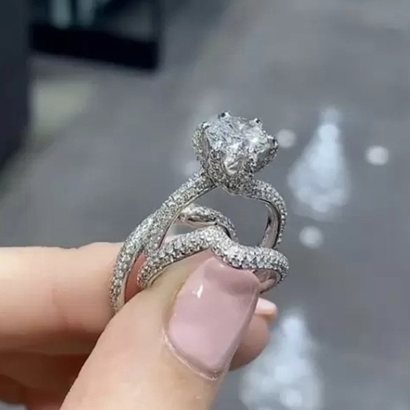 Micro-inlaid celebrity style classic all-match popular ring six-claw zircon wedding ring European and American style light luxury ring