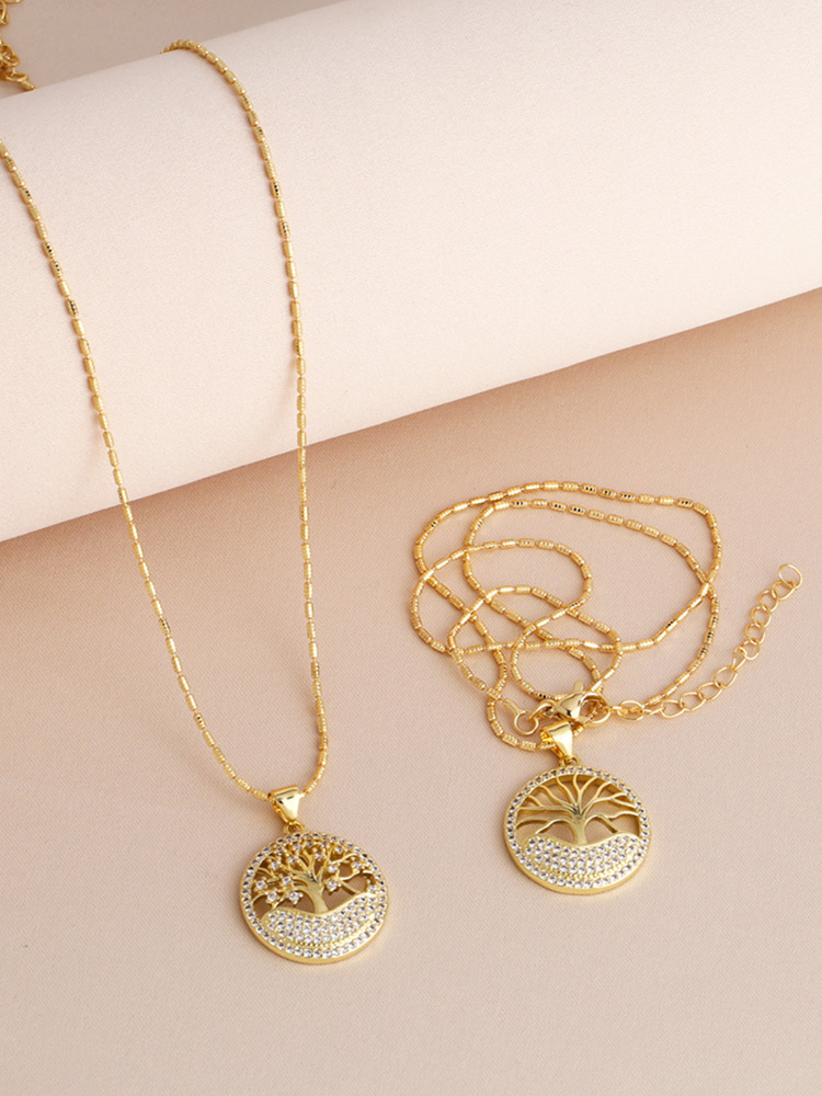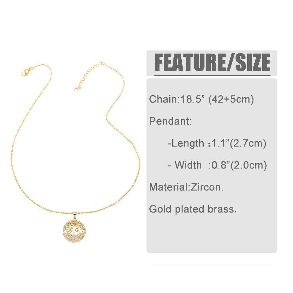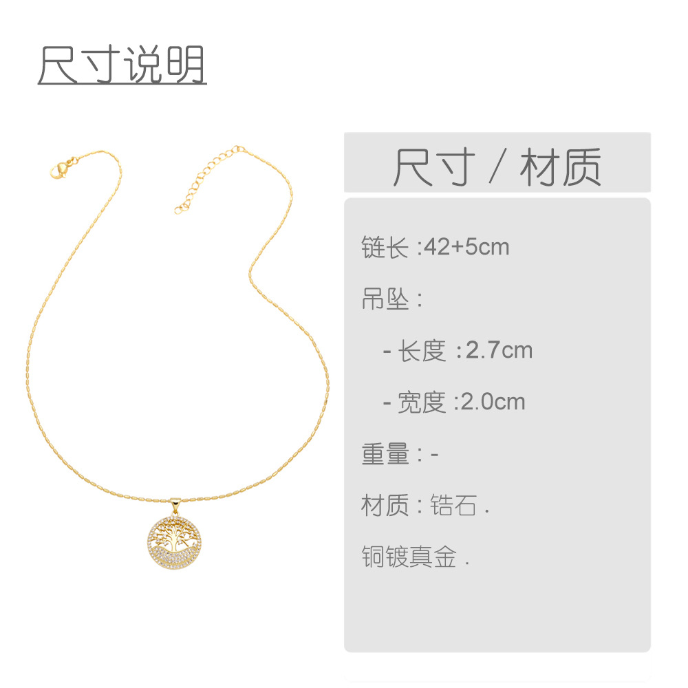 Hot selling tree of life necklace pendant temperament versatile zircon gold-plated necklace nkb853