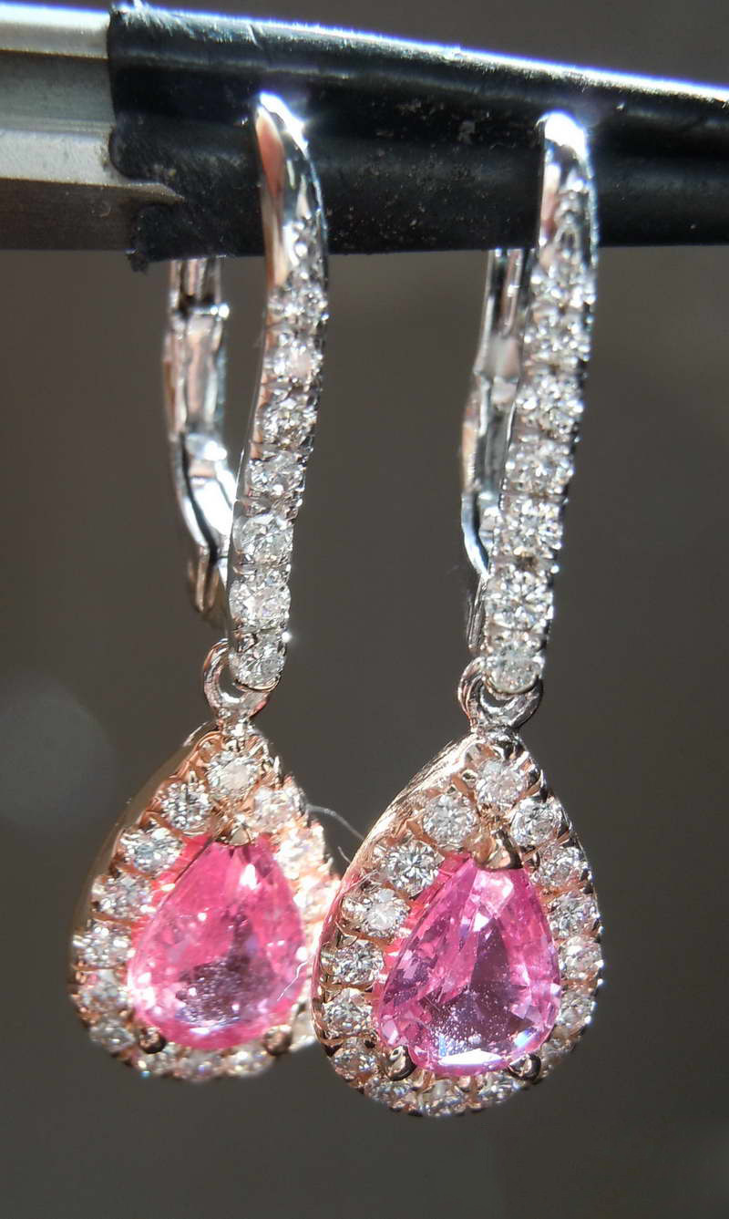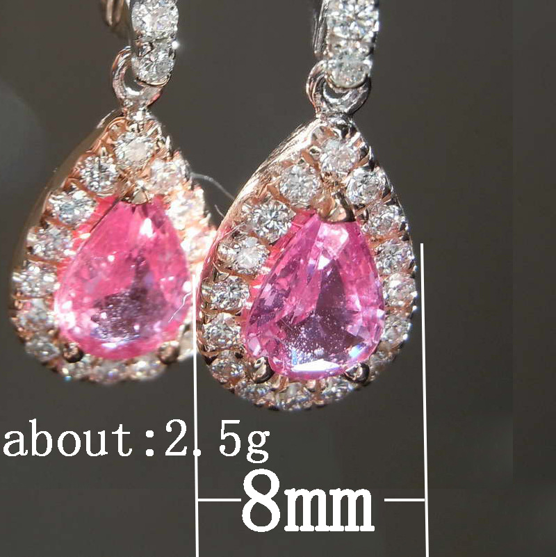 Hot selling two-tone plated versatile teardrop-shaped pink diamond earrings fashionable European and American style women's jewelry