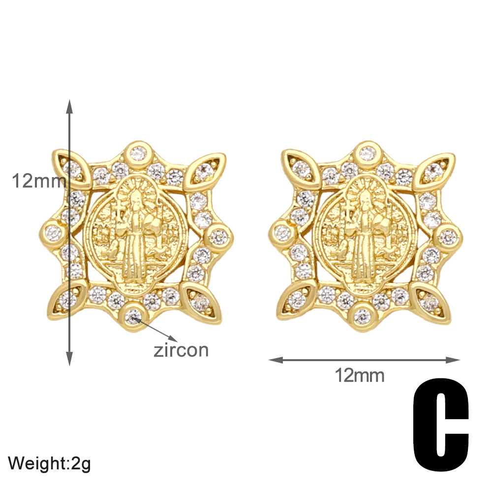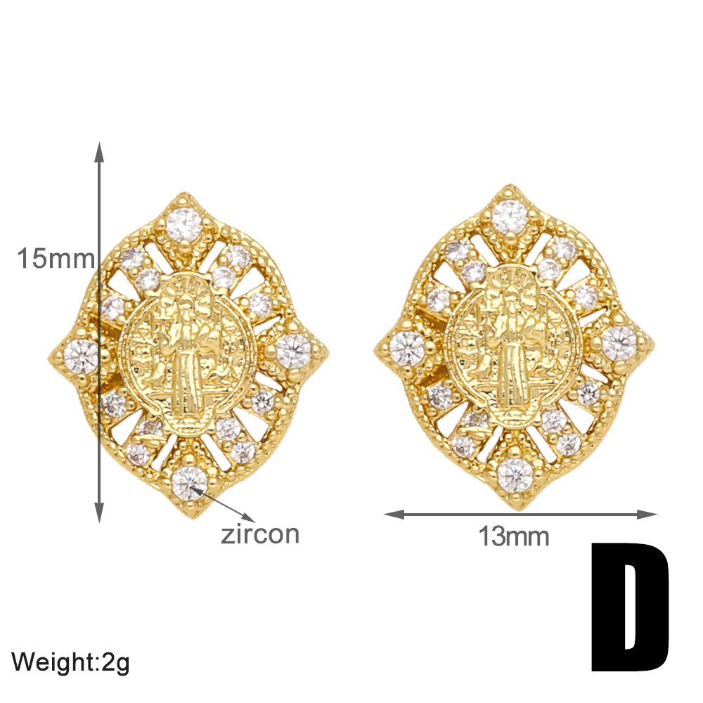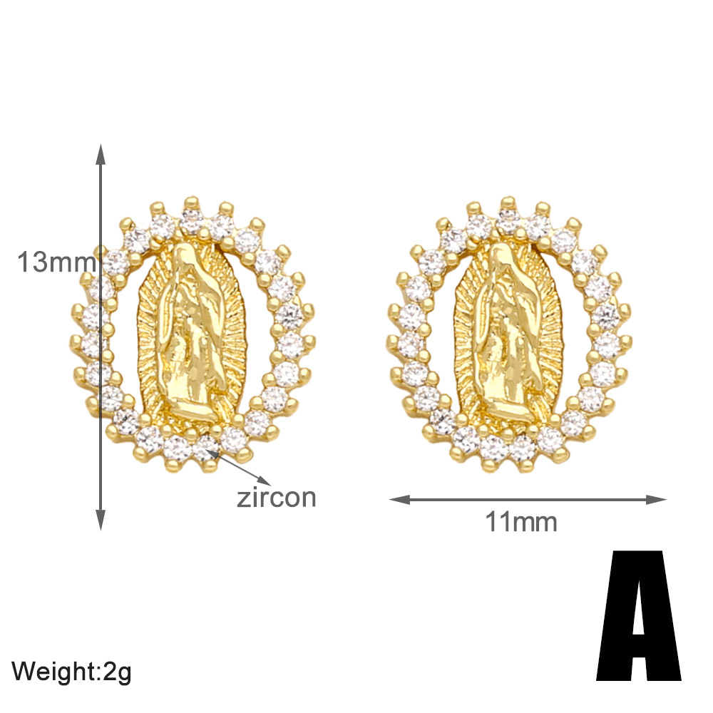 Hot selling Virgin Mary earrings inlaid with zircon and 18k gold plated copper personalized fashion earrings eru79