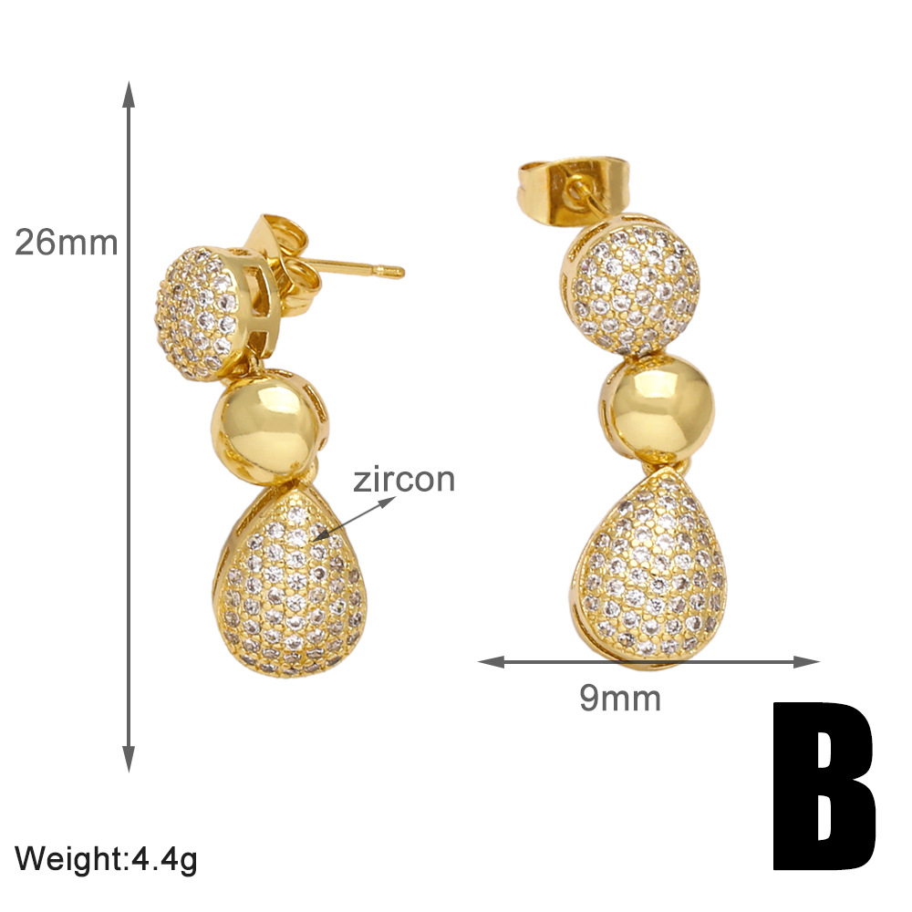 Hot selling water drop round earrings personality versatile inlaid zircon gold-plated earrings erv31