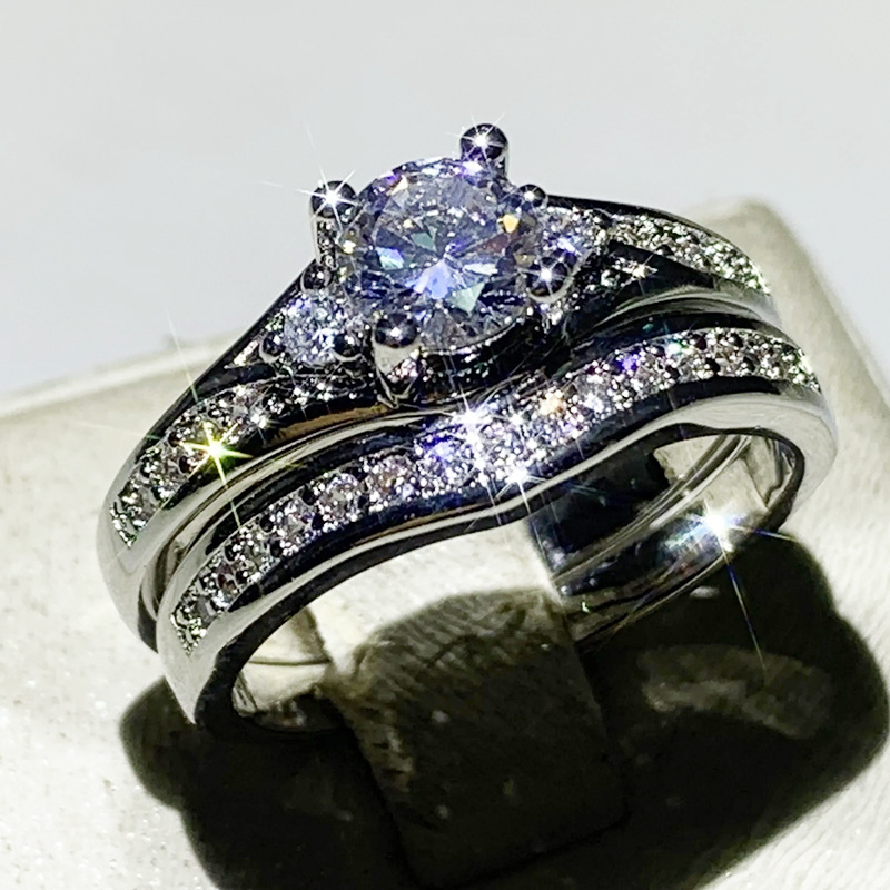 Classic four-claw imitation zircon micro-inlaid ring women's double row two-color twist arm ring engagement wedding ring women